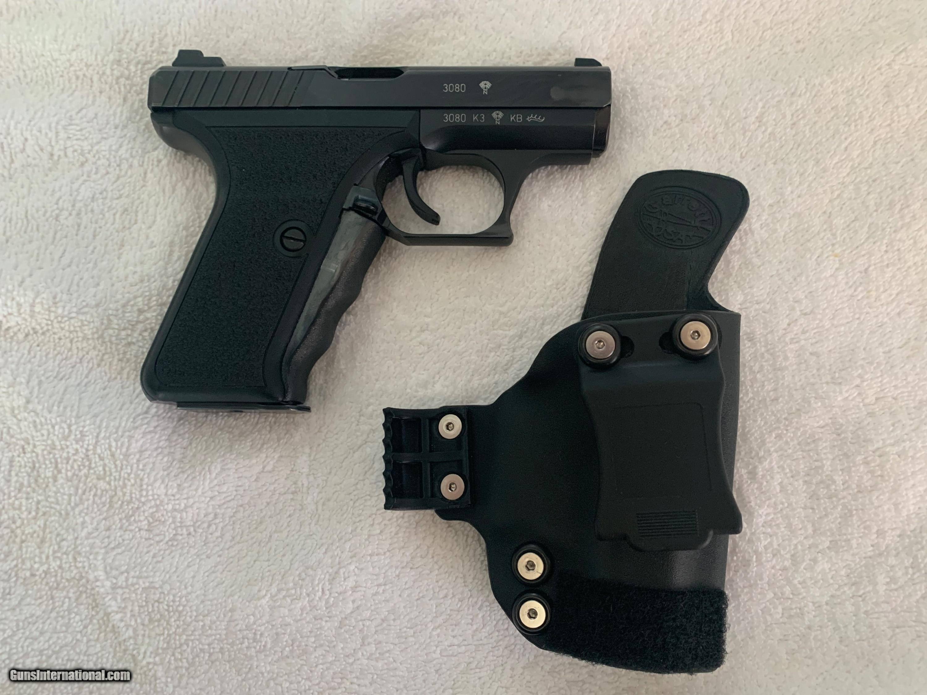 Description: The Heckler & Koch P7K3 is a compact, unique, and highly collectible variant of the renowned HK P7 series of semi-automatic pistols. It is the smallest version of the P7, intended for concealed carry and self-defense. The "K3" (Kalibers 3) designation refers to its primary distinguishing feature: the ability to quickly convert between three different calibers by swapping the barrel, slide, and magazine: .380 ACP (9mm Short), .32 ACP (7.65mm Browning) and 22 Long Rifle with the appropriate conversion kits. This is the .380 ACP model. The P7K3 uses a straight blowback action with a hydraulic recoil buffer. It retains the P7's iconic and safe squeeze-cocking lever on the front strap of the grip, which must be depressed to cock the striker and enable firing. Releasing the lever instantly and safely decocks the pistol. The fixed barrel of 3.8 inches assures the incredible accuracy of this pistol. The P7K3 is highly sought after by collectors due to its rarity, unique convertible design, and the overall quality and innovation associated with the H&K P7 line. This pistol is in excellent, factory-new condition. Included in the sale are the original box, owner’s manual, HK sighting target, two magazines and a custom fit Garrett Kydex holster with claw. This unique pistol is offered at $5,800.00 plus shipping. Handgun Caliber: .380 ACP (9x17mm Browning Short) Manufacturer: Hecker & Koch Model: P7K3 Serial Number: 3080 Barrel Length: 3.8 inches Condition: Excellent Metal Condition: Excellent Bore Condition: Excellent Action: Single Action Squeeze Cocker Weight: 26 oz Price: $5,800.00 Contact Seller |