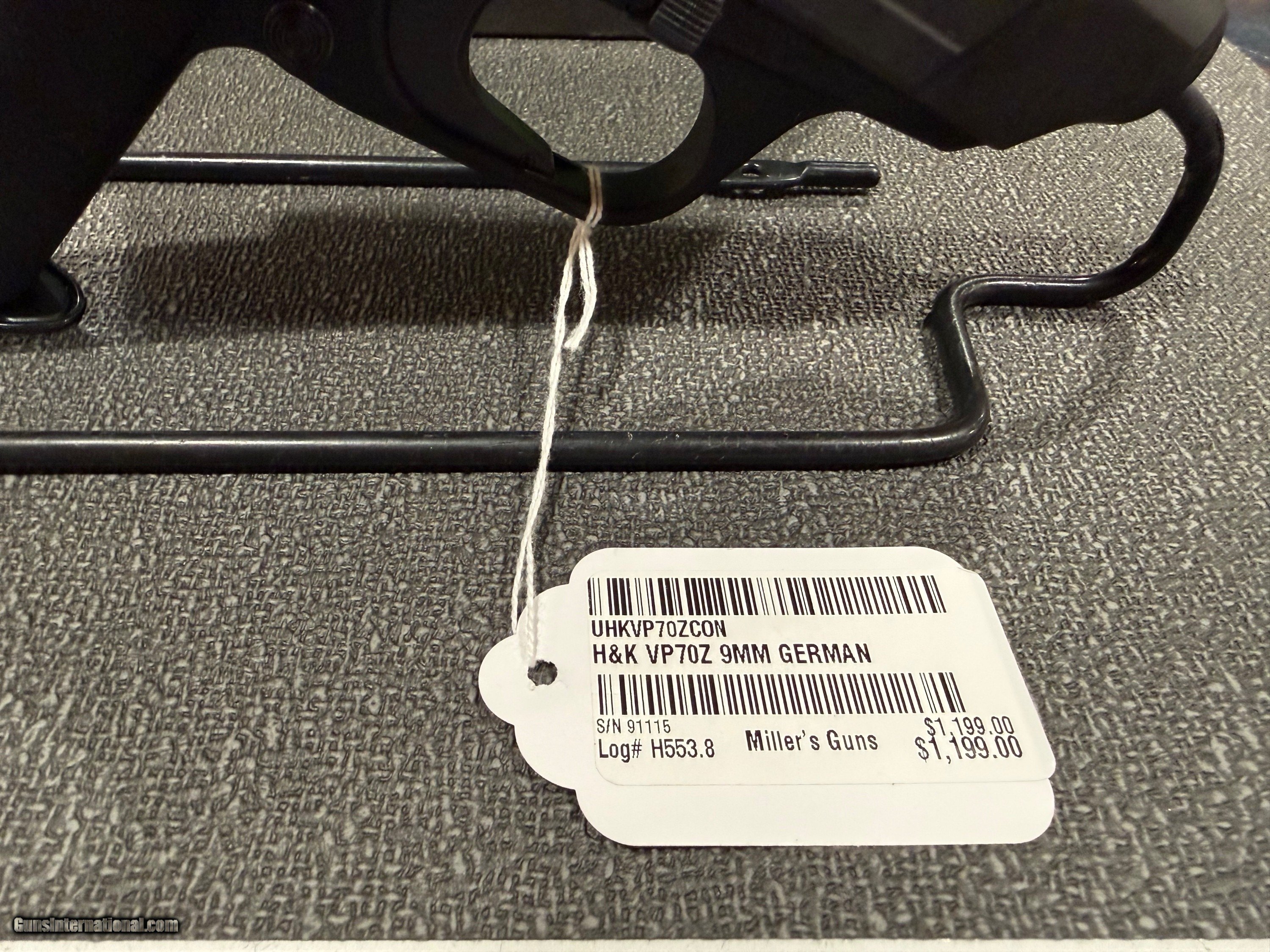 Description: USED H&K VP70Z 9mm 18 round capacity (2) magazines included Factory box included Factory literature included Handgun Caliber: 9x19mm Parabellum (9mm Luger, 9x19mm NATO) Manufacturer: H&K Model: VP70Z Serial Number: 91115 Barrel Length: 4.6 Condition: EXCELLENT Price: $1,199.00 Contact Seller |