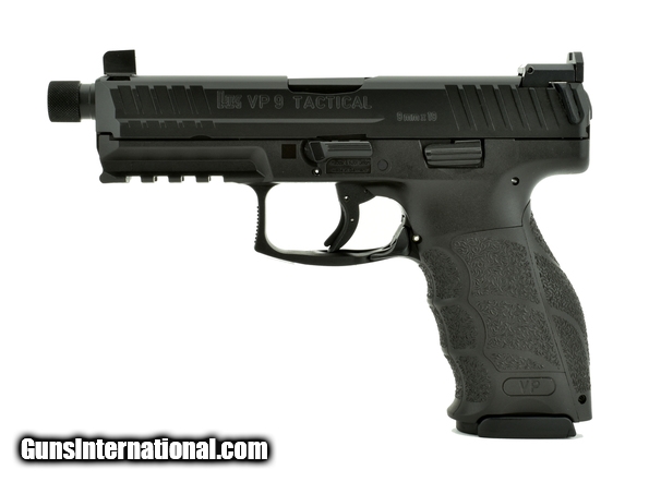 Description: H&K VP9 Tactical 9mm caliber pistol. Tactical model with threaded barrel, raised night sights and 3 magazines. NEW