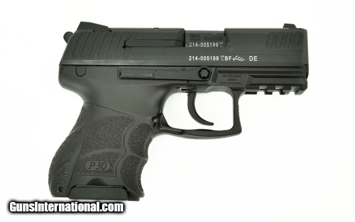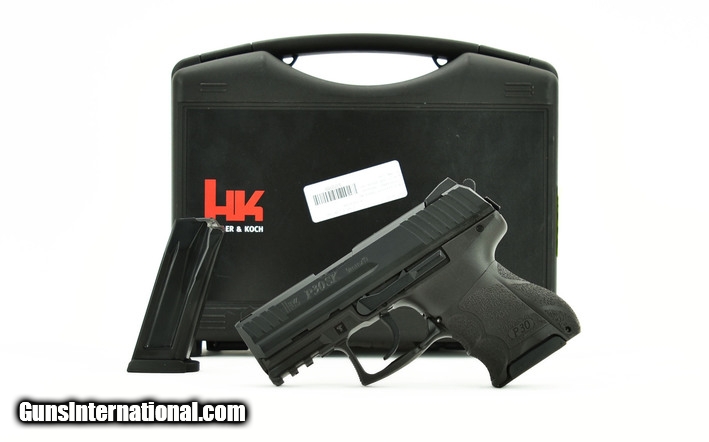 Heckler and Koch P30SK 9mm caliber pistol. This is a compact model that comes with a box, extra magazine, and accessories. It is in excellent condition.