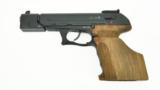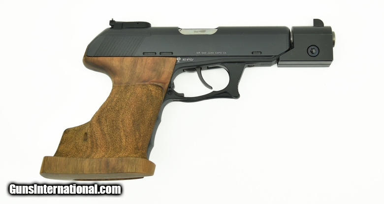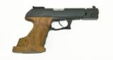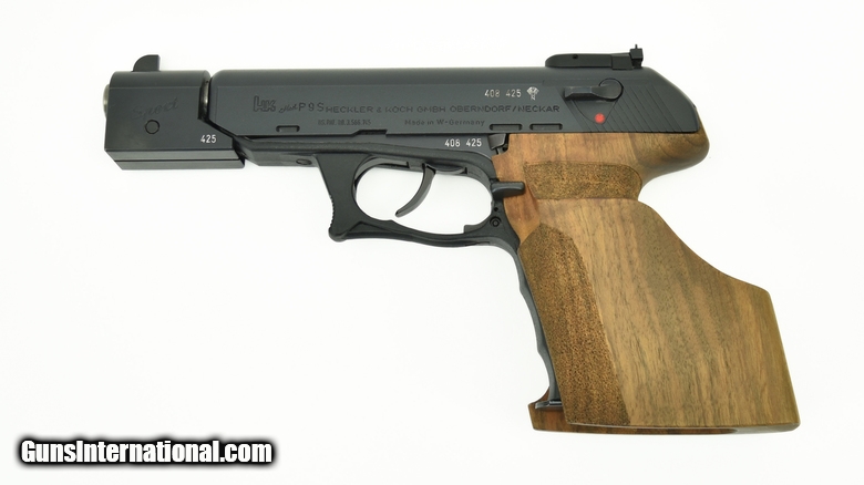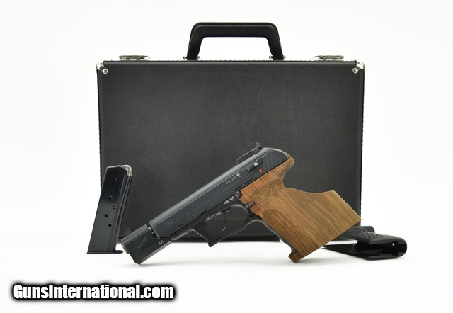 Description: Heckler & Koch P9S .45ACP caliber pistol. Rare sport model with extended weighted barrel, adjustable sights, and oversized target grip. Comes cased with extra magazine and standard grip. A neat set in excellent condition. SOLD |