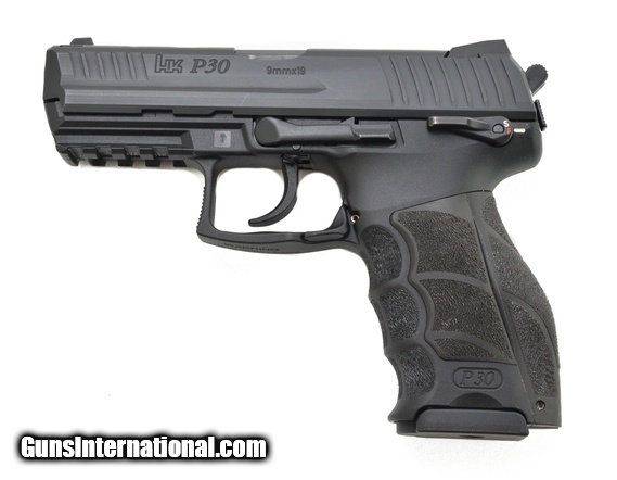 HK P30 9mm caliber pistol. Has safety and de-cocker in excellent condition.