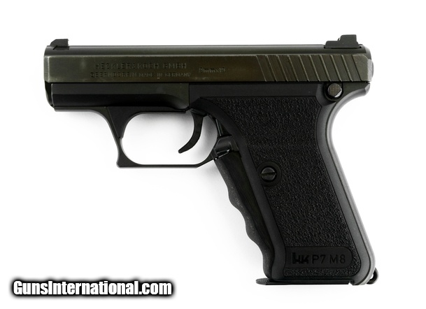 Description: HK P7/M8 9mm caliber pistol. German made squeeze cocker with box, papers and extra magazine in excellent condition.