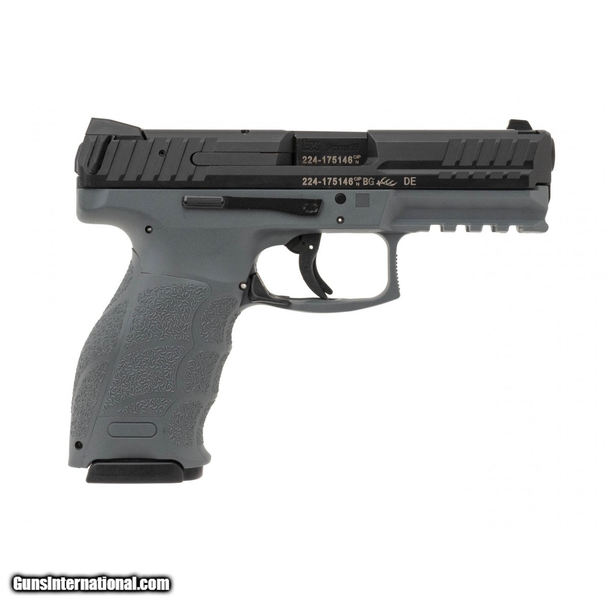 SN: 224-175146. Modern production. Double-stack polymer-framed full-size pistol made by Heckler and Koch. 17-round magazine capacity. Features trigger safety and paddle-style magazine release. Excellent condition. Comes with box and spare magazine.