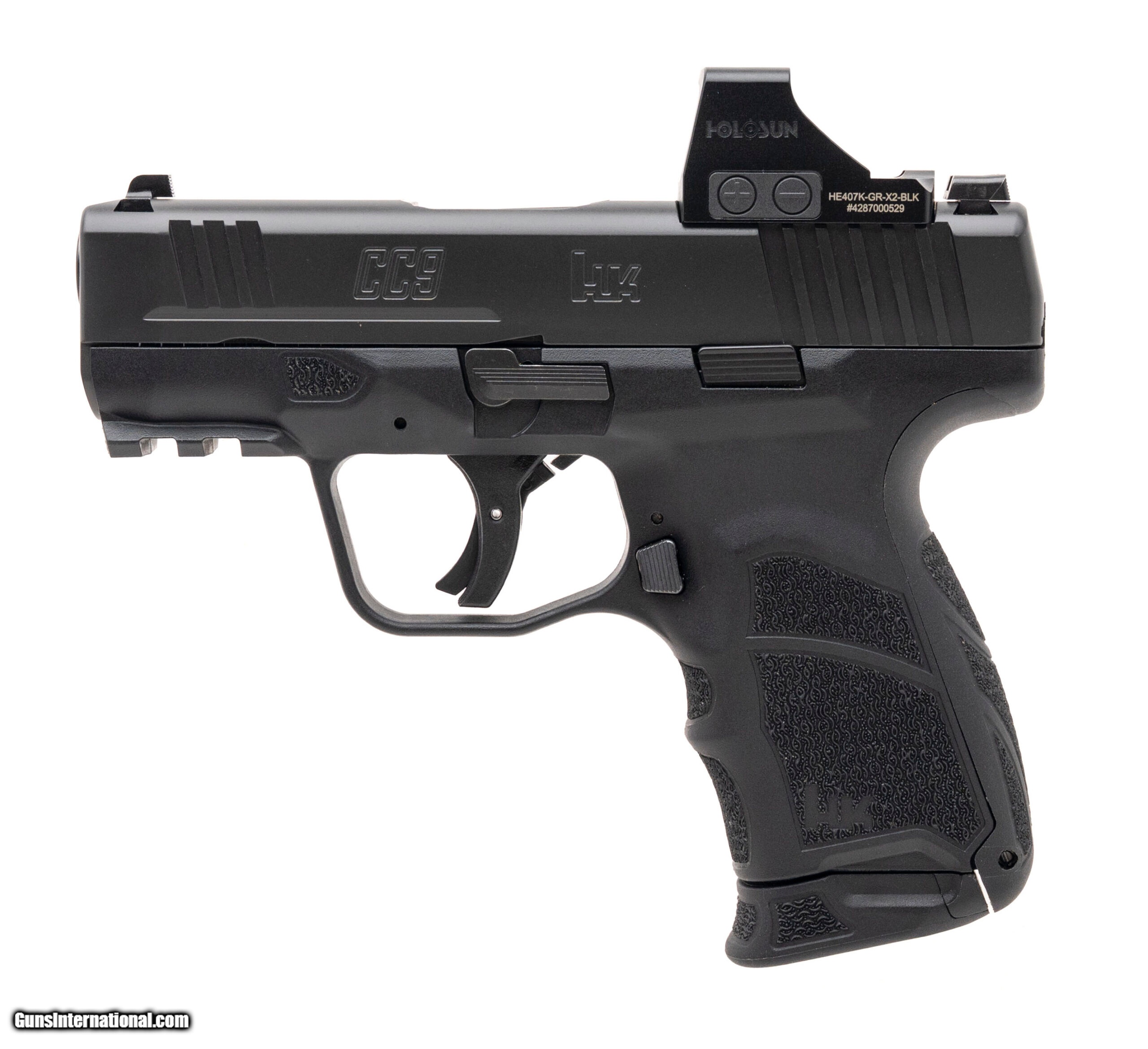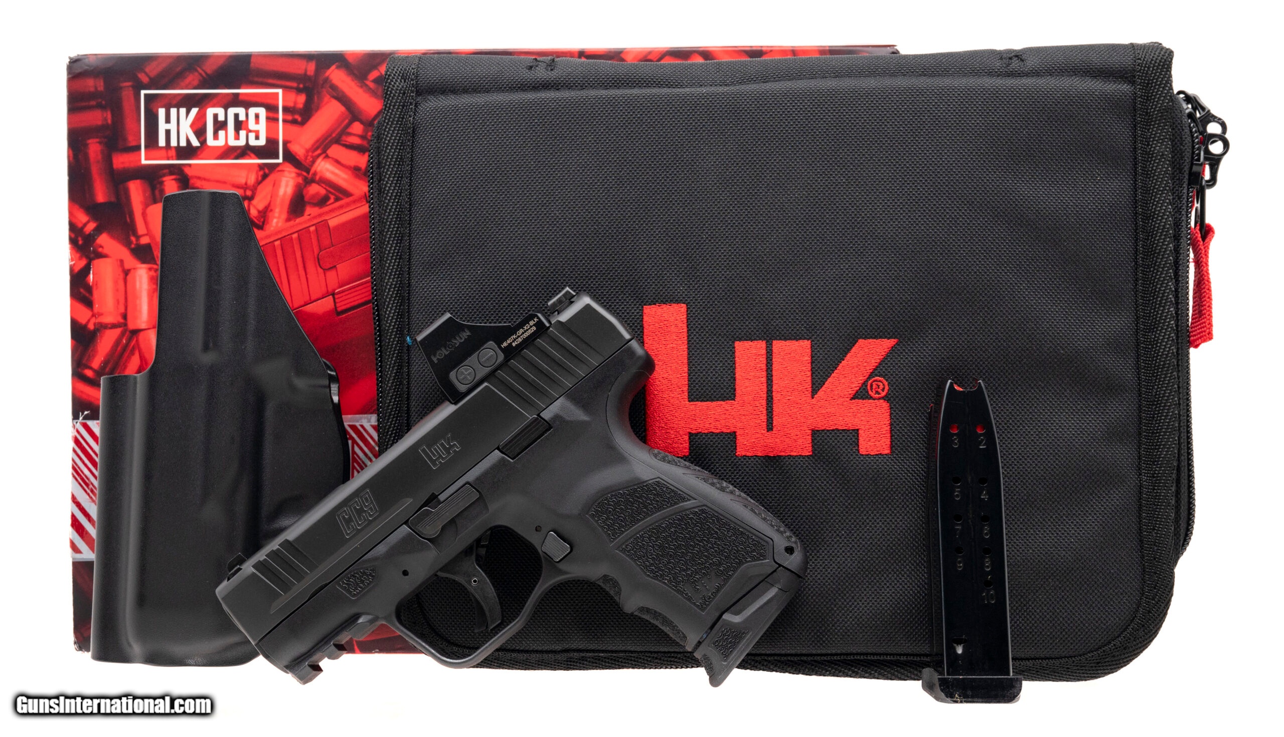 Description: "SN: B010127. Modern production, 9mm with a 3.32"" barrel. Sub-compact striker fired pistol with a Holosun 407K green dot optic. Overall condition is near excellent. Comes with box, HK carry bag, holster, and an extra magazine. SOLD |