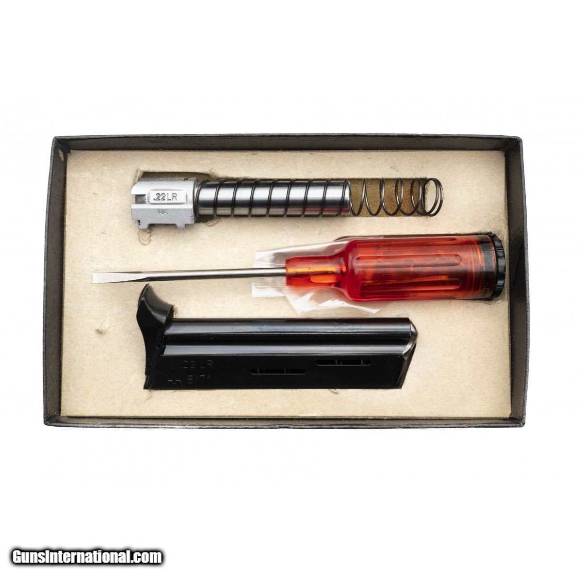 Early German made compact pistol with extra .22LR conversion kit. Excellent condition with box and extra mag.