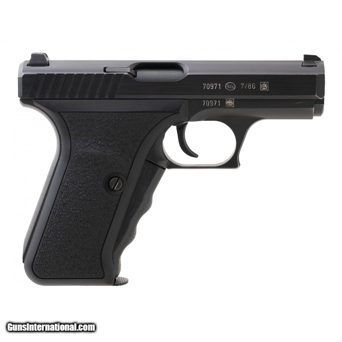 Description: " SN: 70971. W. German police model, dated 1986. Very good condition with light edge wear, with box, manual and extra mag. SOLD |