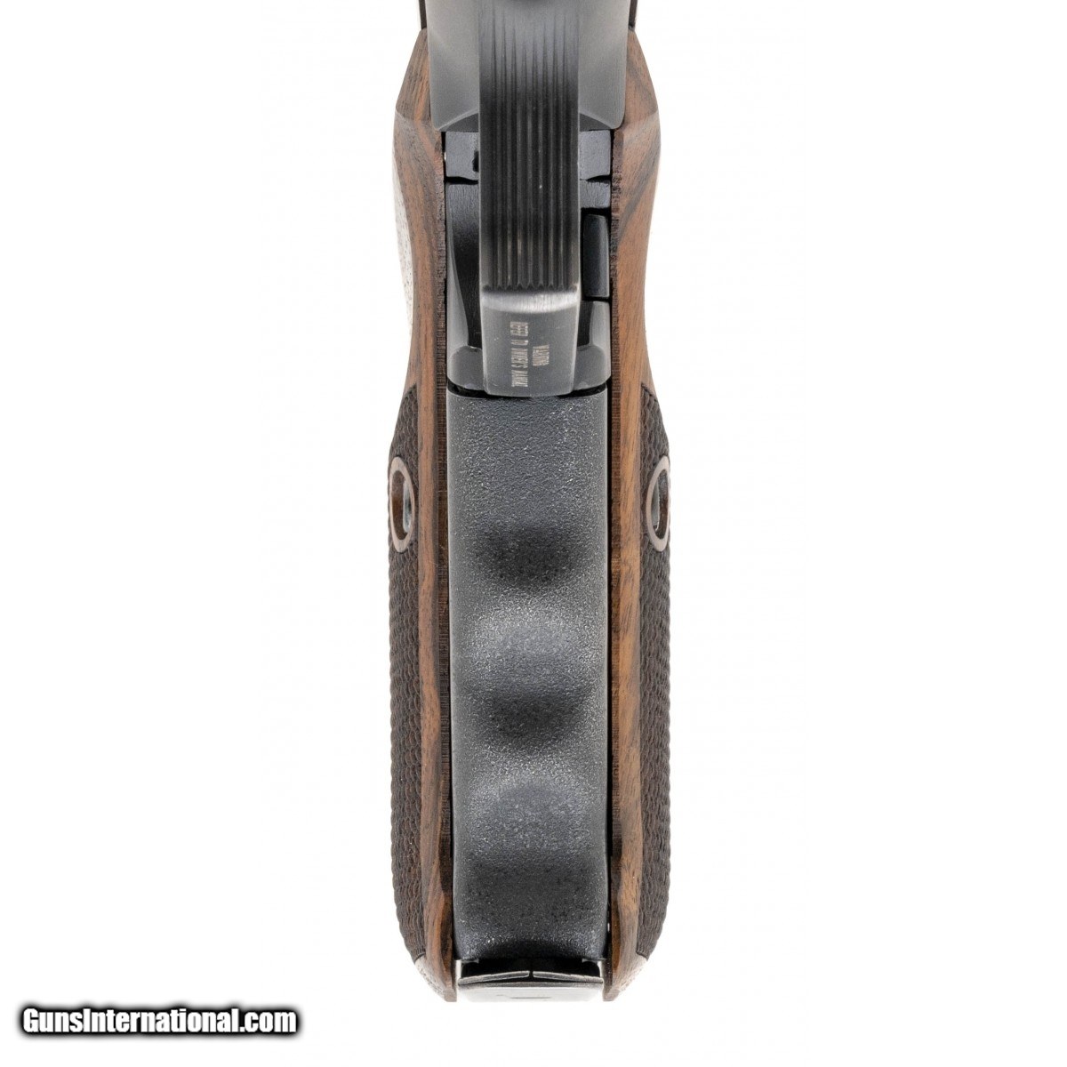 SN: 70548. Made in 1986. 9mm with 4"" barrel. W. German police issue squeezecocker in very good condition. Has custom wood grips.