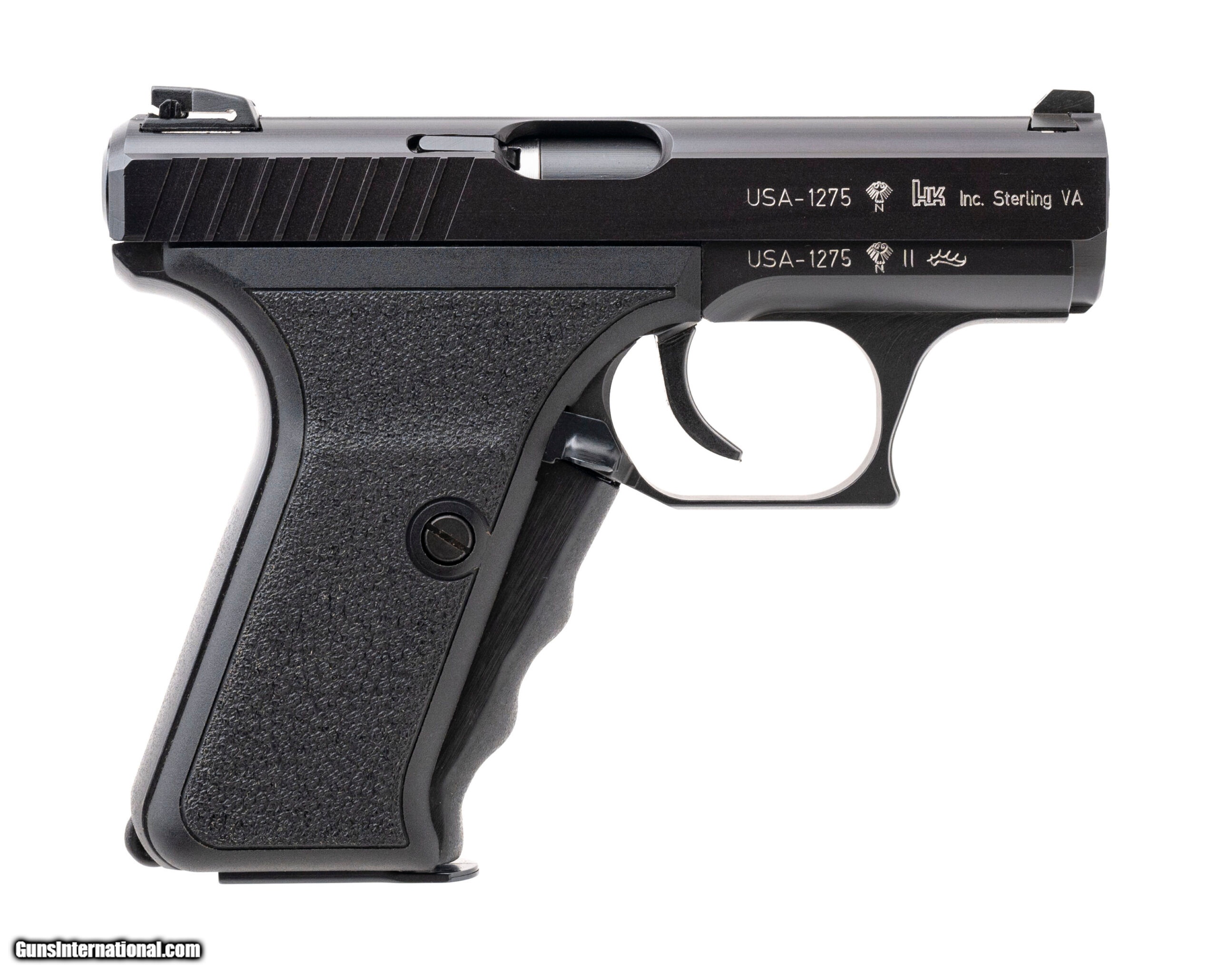 Description: "SN: USA-1275. Made in 1988, .380 ACP with a 3.8"" barrel. Rare German made squeezecocker small frame pistol in .380 ACP. Excellent condition with case, manual, tool and extra mag. A very desirable German made HK pistol. SOLD |