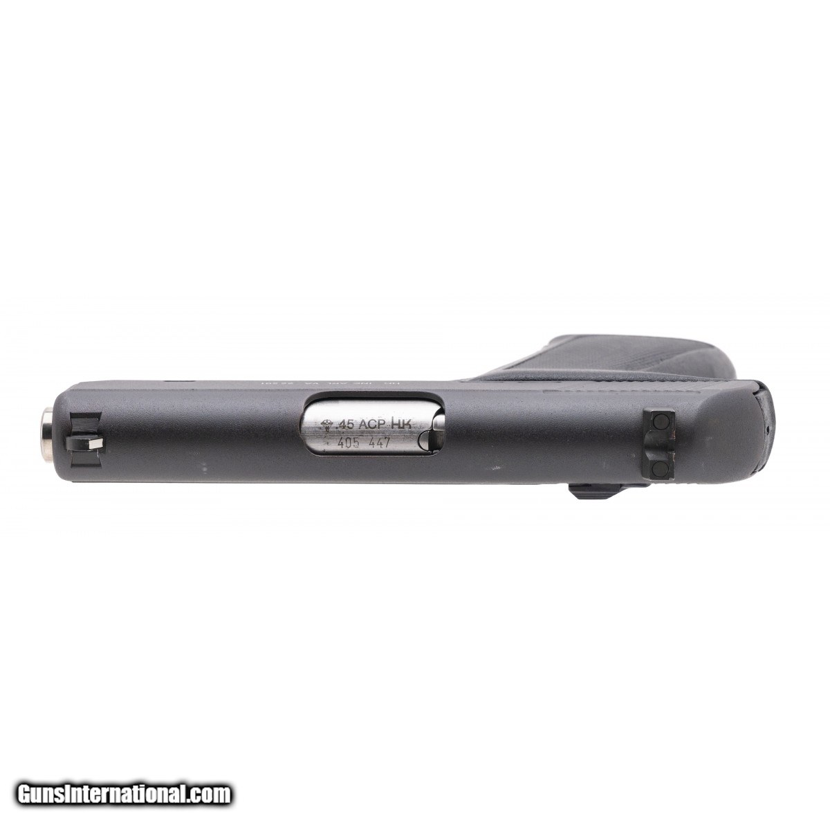 Description: "SN: 405447 . Made in 1982. .45 ACP with a 4"" barrel. Bore is in near excellent condition. German made Heckler & Koch scarce pistol. Finish and grips are in near excellent condition. Overall condition is near excellent. SOLD |
