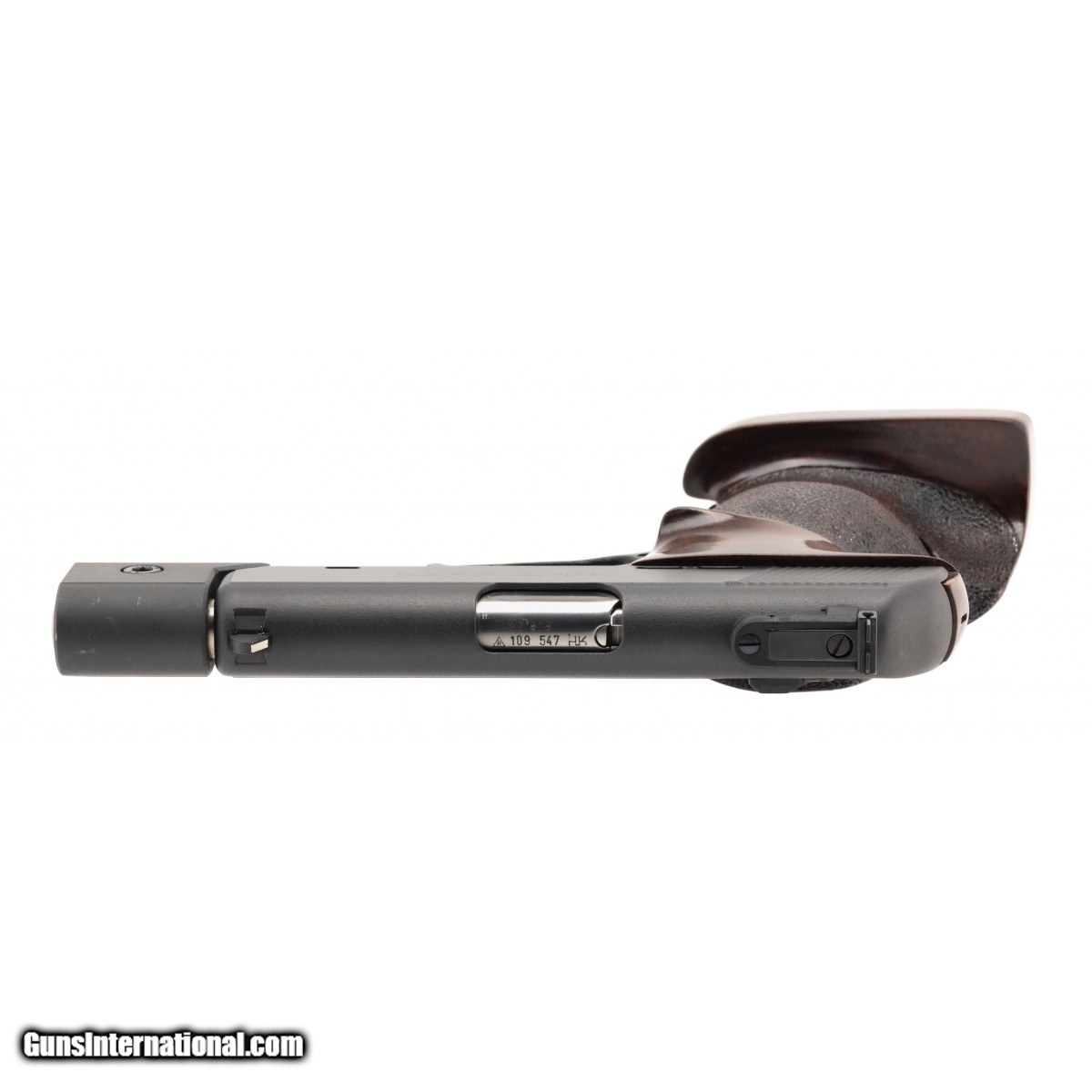Very desirable Sport model with extended barrel and weight, adjustable sights and oversized adjustable wooden target grip. Comes with a standard size barrel and standard black grip for casual shooting. The box and manual are the early style marked ""P9"" instead of P9S, and includes a tool and extra mag. A great set, in excellent condition.