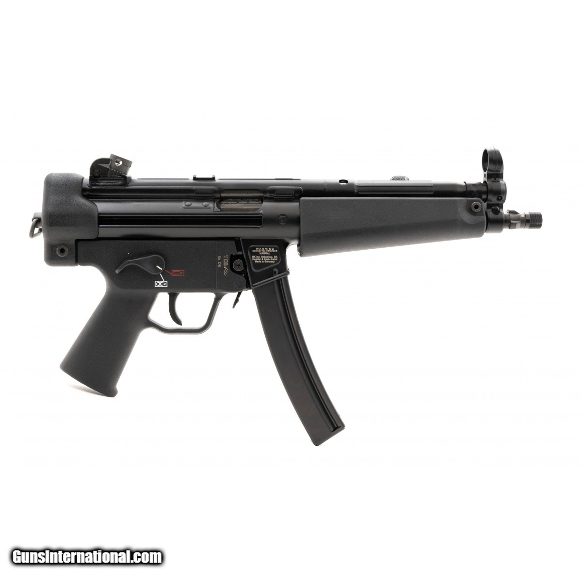 Original German-made, roller-delayed blowback operating system semi-auto, tactical pistol. 8.5"" Barrel, paddle mag release, fluted chamber, aluminum alloy frame, threaded tri-lug adapter, black finish. Comes with HK range bag, 2-30rd magazines and ""Bungee"" sling. New. UPC:642230259829
