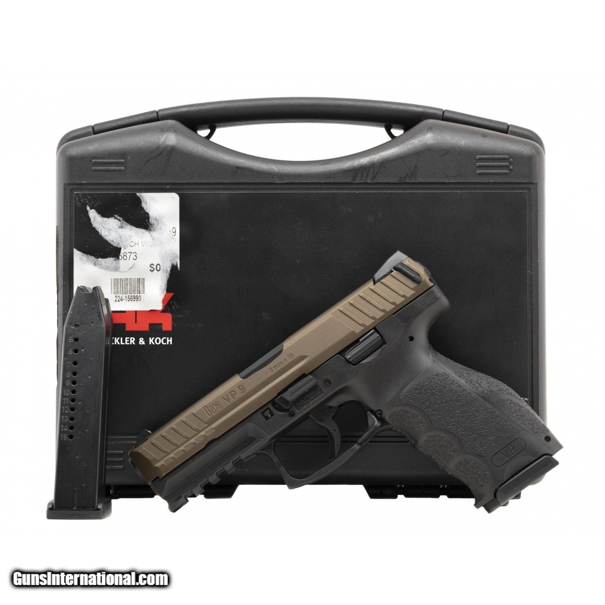 German-made full size pistol with burnt bronze slide, and painted three dot sights. Very good condition. With Box and magazine.