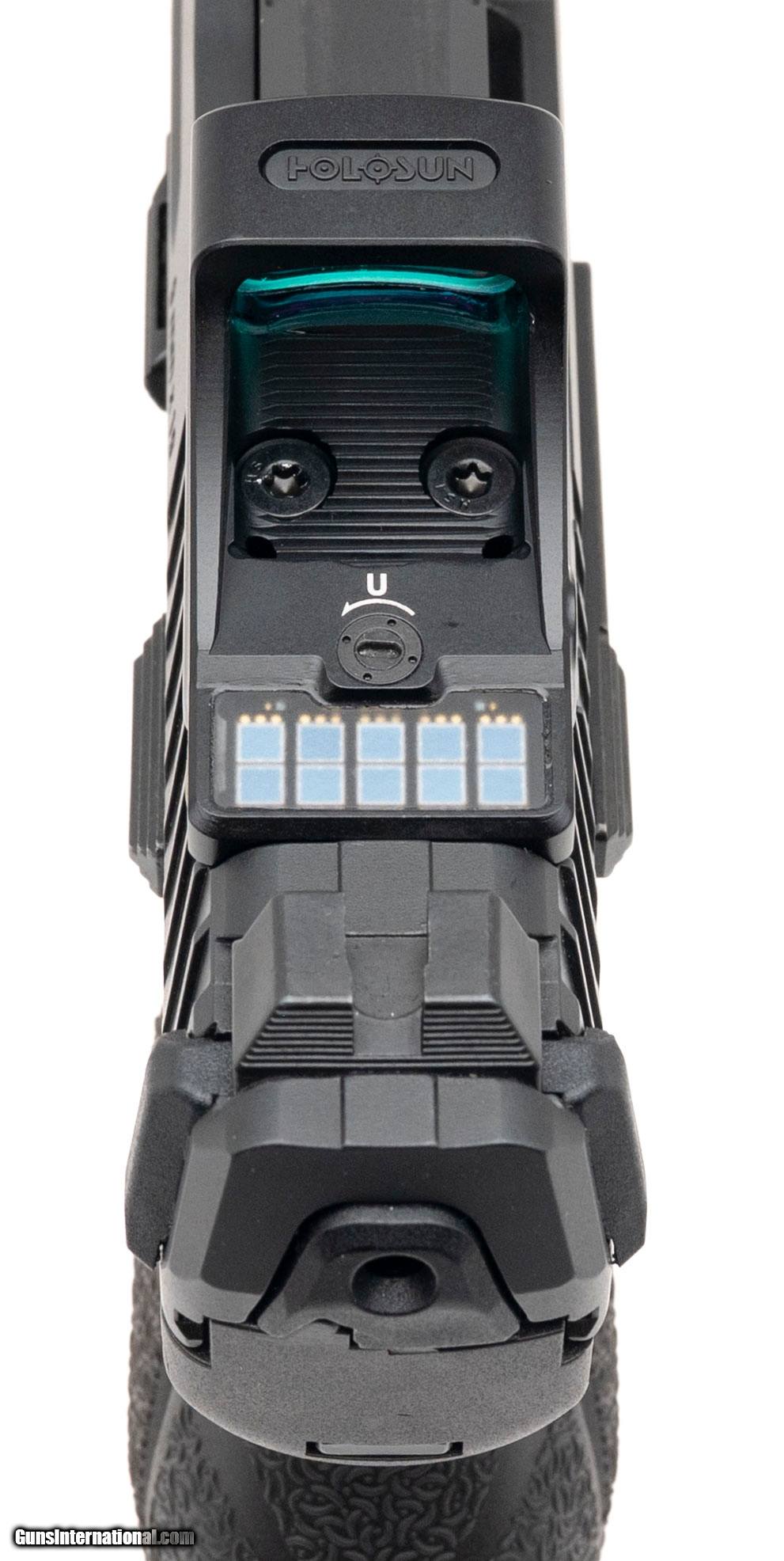 Description: "SN: 281-003794. Modern production, 9mm with a 4.53"" barrel. Bore is excellent. Full-size striker fired pistol with a Holosun SCS VP-9 green dot sight, accessory rail, ambidextrous controls, matte black finish, and black polymer frame. Finish shows minor marks. Includes additional magazine, 3 additional backstraps, 4 additional lateral plates, original optic plate cover, soft carry bag, and original box. Overall condition is near excellent Price: $1,125.00 Contact Seller |