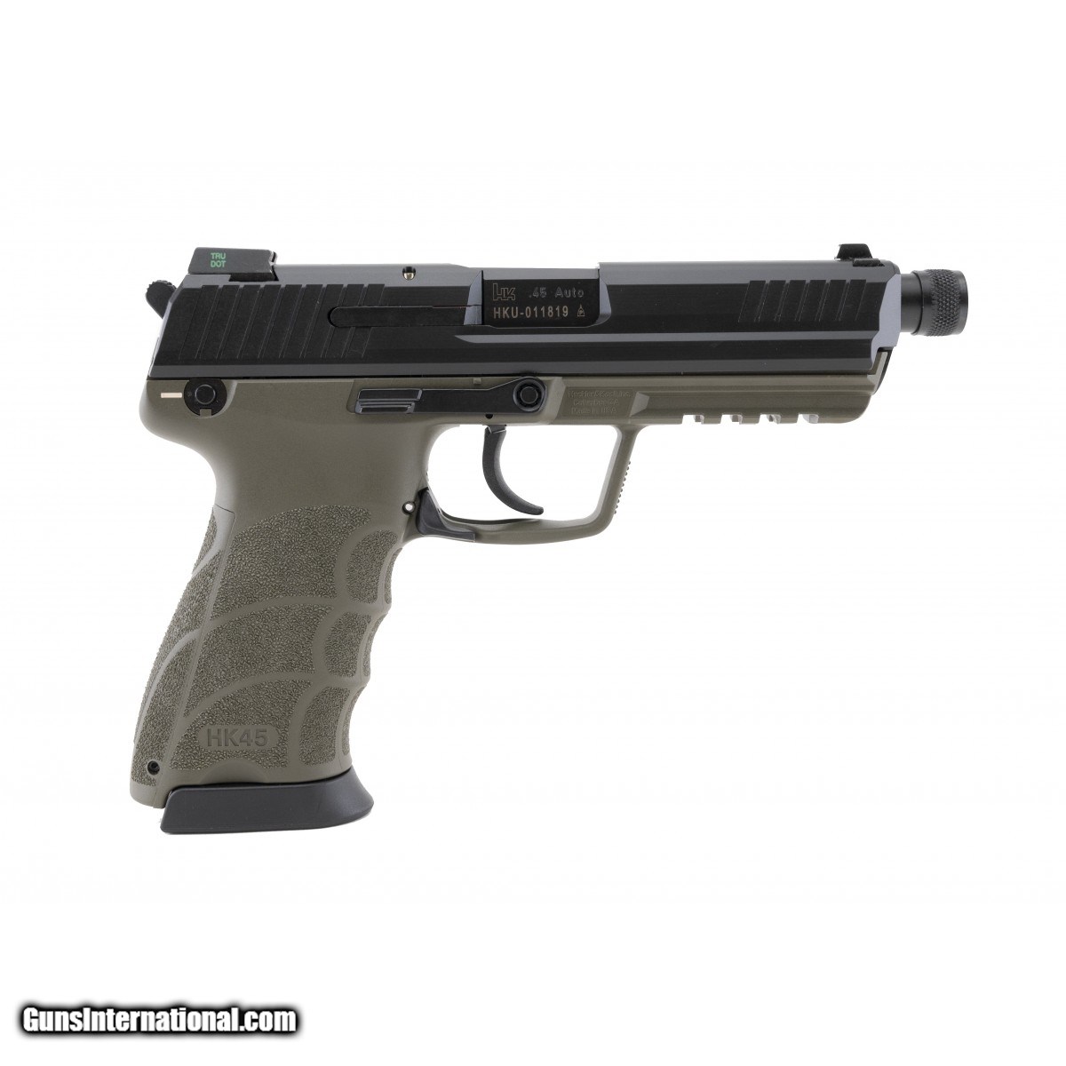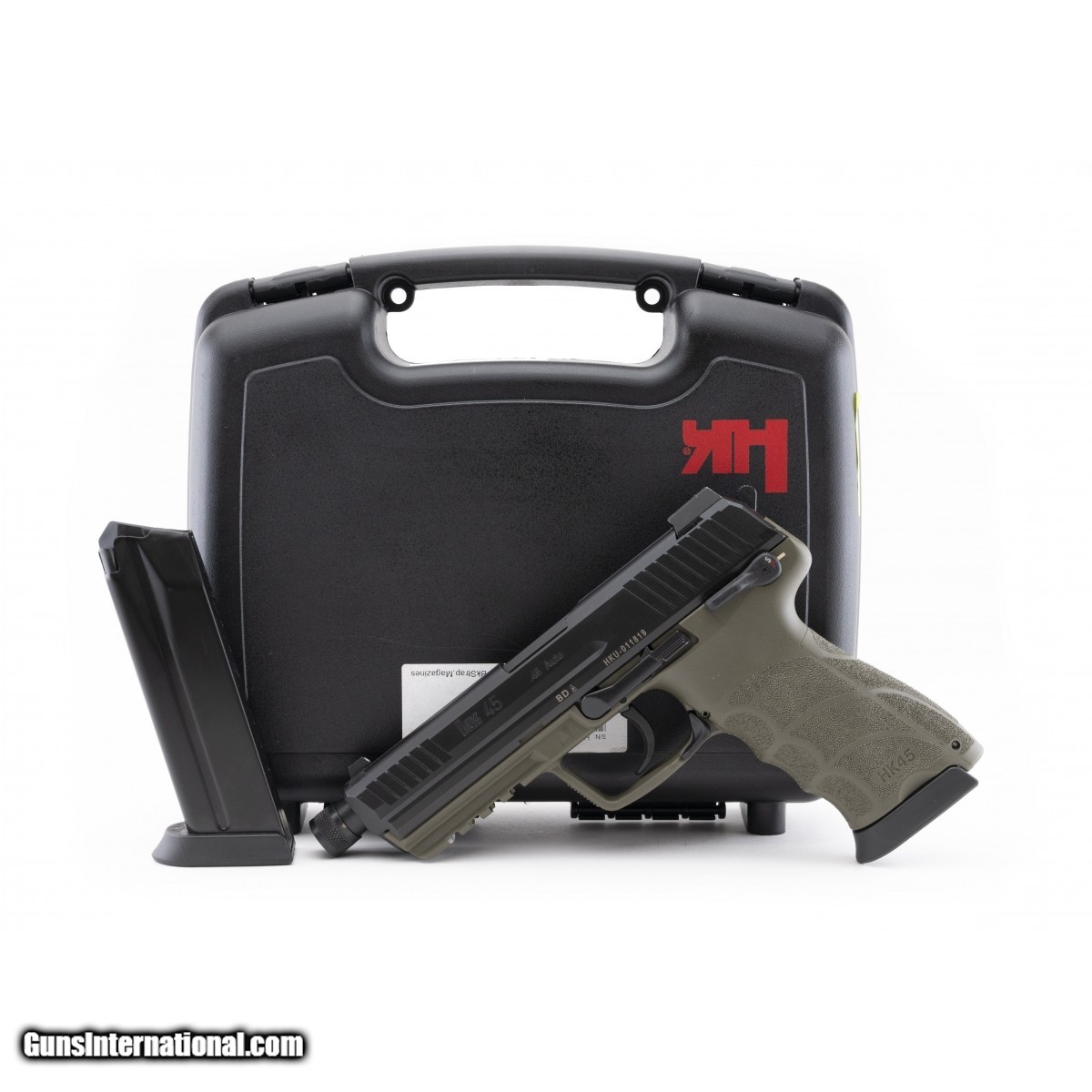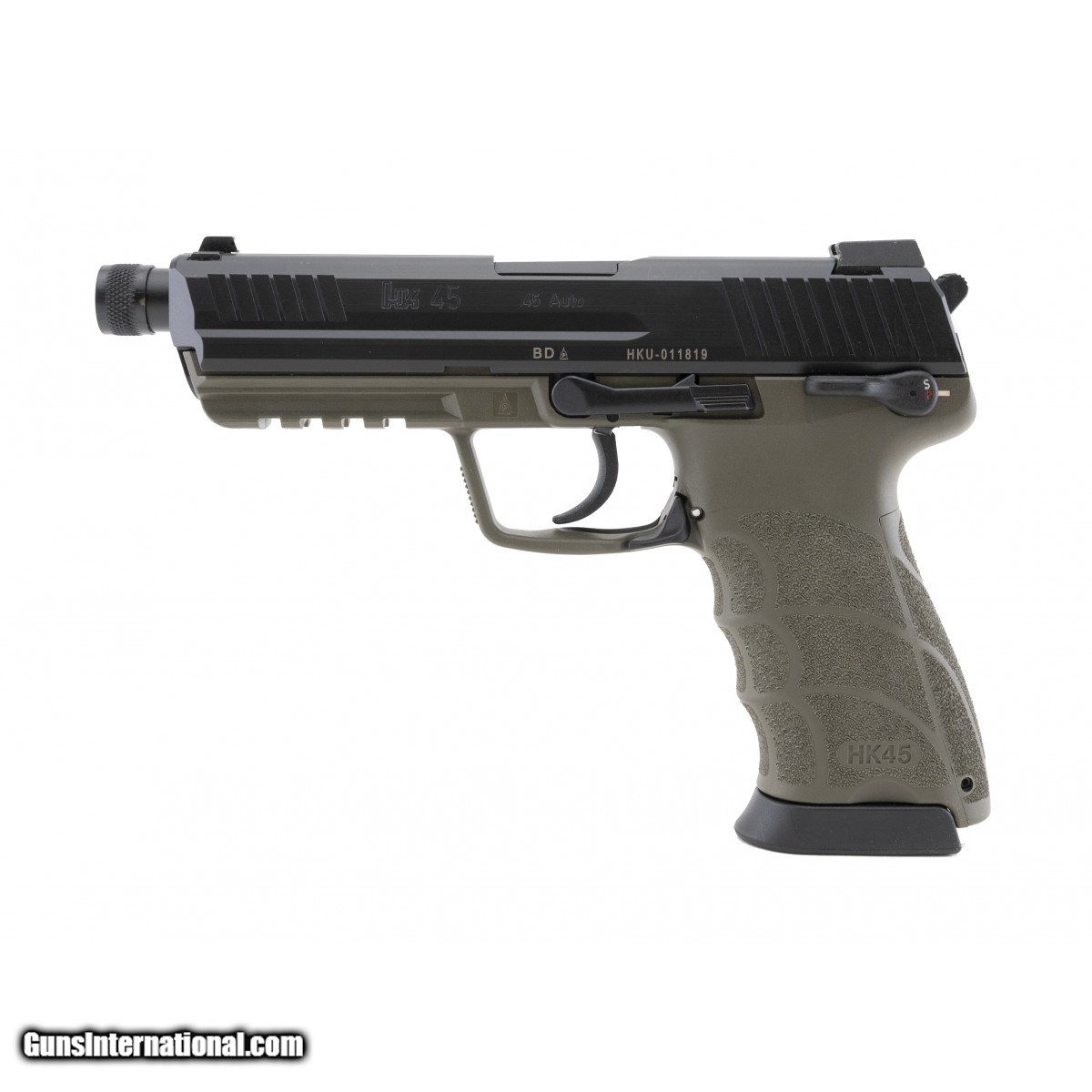 Olive drab green full size tactical model with threaded barrel, DA/SA trigger, safety/decocker and ambidextrous magazine release. Comes with spare magazine and original box.