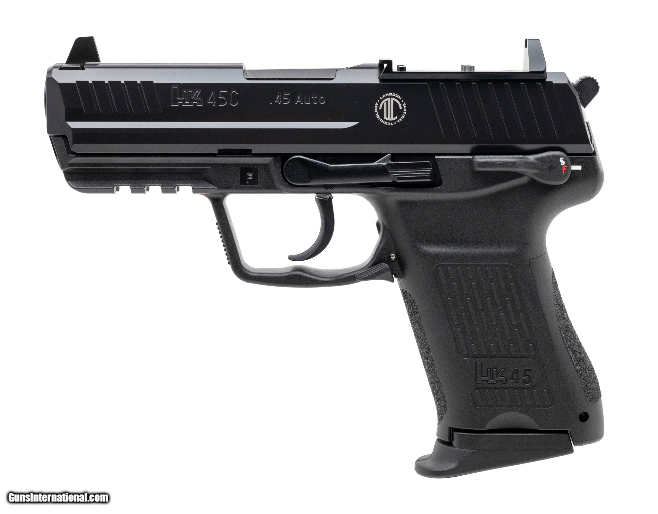 Description: "Heckler & Koch 45C V1 Langdon Tactical Pistol. .45 ACP with a 4.57"" barrel. Compact double action pistol customized by Langdon Tactical with RMR co-witness plate, polymer frame, and action tune package. New. UPC: 810059263147 (STOCK PHOTO) SOLD |