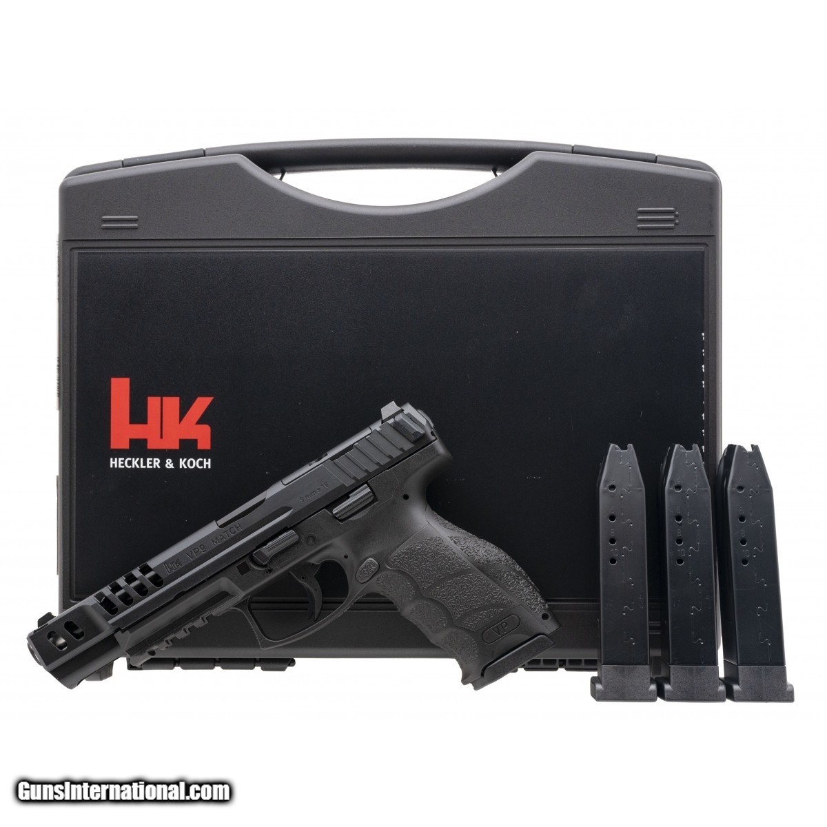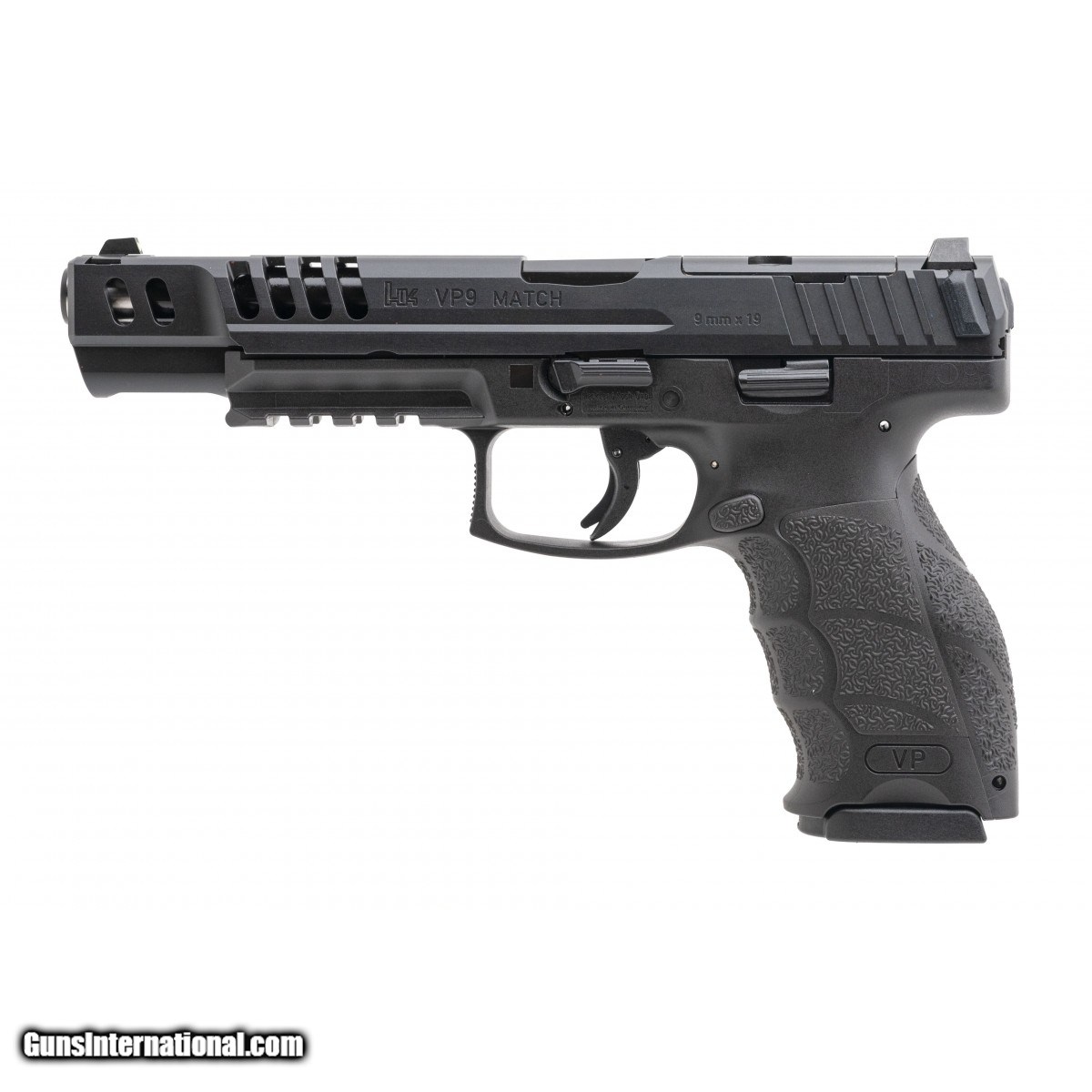 Heckler & Koch VP9 Match. 9mm with a 5.5"" barrel. Semi-automatic polymer frame handgun with Optic ready, photo luminous sight and ambidextrous paddle magazine release. Comes with case and 3 extra magazines. UPC:642230263024