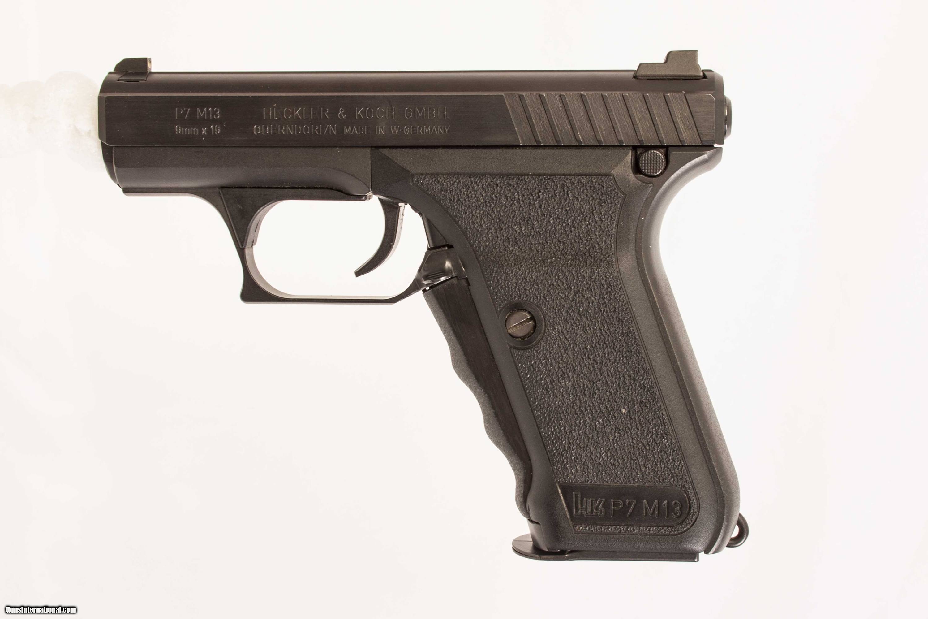 Description: H&K P7 M13 chambered in 9mm with a 4 1/4 inch barrel bright bore good groove original case and paperwork. This gun is in excellent condition and is covered by Dury's Lifetime Warranty.