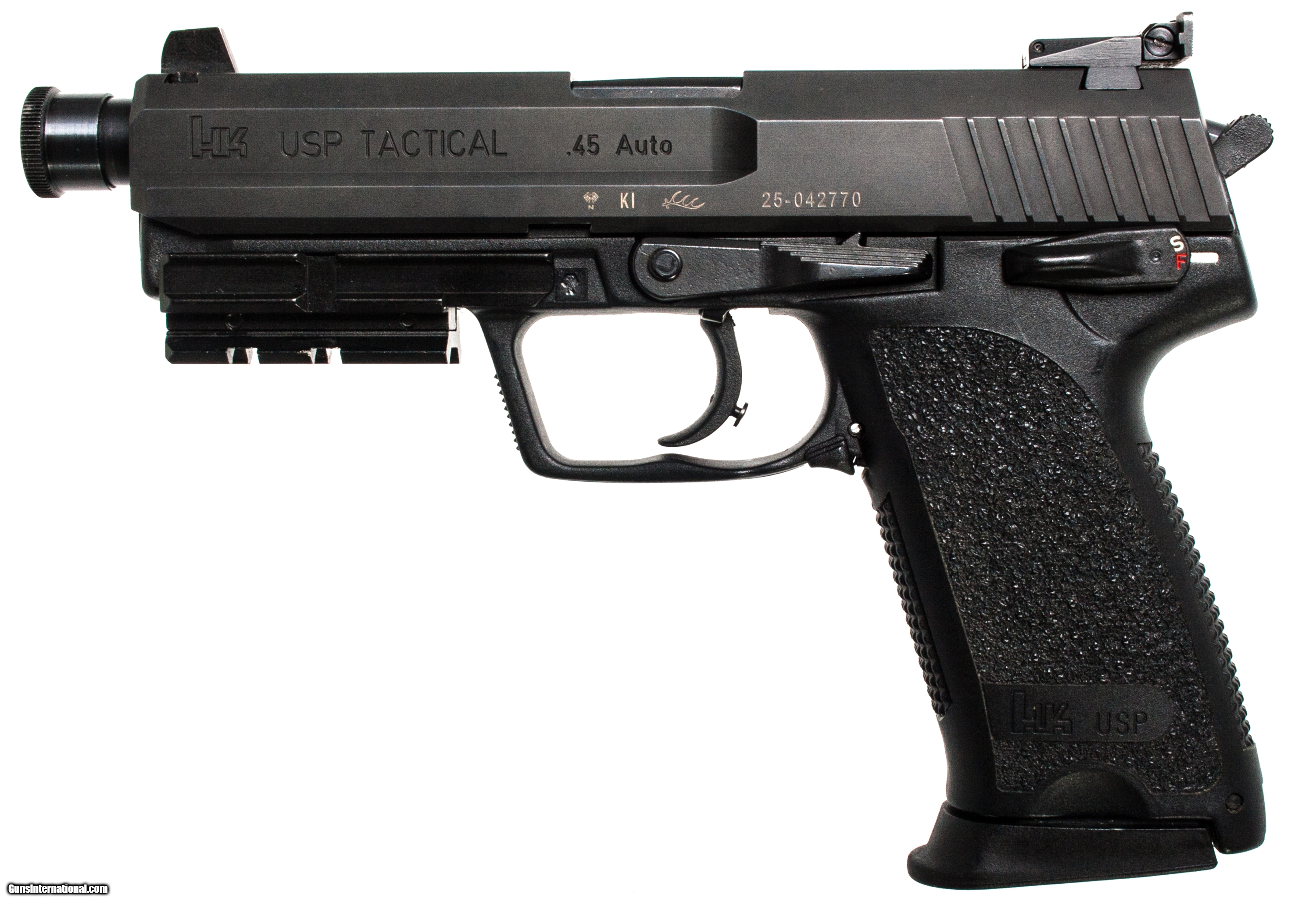 H&K USP 45 TACTICAL WITH A 5 INCH THREADED BARREL SOFTCASE AND 3 EXTRA MAGAZINES. THIS GUN IS IN EXCELLENT CONDITION AND IS COVERED BY DURY'S LIFETIME WARRANTY.