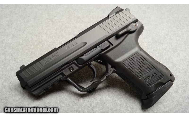 Description: Smaller in length and height than the standard HK45, the HK45 Compact (HK45C) uses a slim-line grip profile, otherwise is nearly identical in features to the full-size HK45. Like the HK45, the HK45 Compact was developed as a possible candidate for the Joint Combat Pistol (JCP) and Combat Pistol (CP) programs administered by the U.S. military in their search for a new service handgun. These programs were suspended before completion and no pistols were selected. The HK45 Compact uses an HK proprietary O-ring barrel for precise barrel-to-slide lockup and optimal accuracy. .45 ACP SOLD Metal Condition: Excellent Bore Condition: Excellent Barrels: Factory 4 Triggers: Factory DA/SA Weight: 2 lbs Item Location: Columbus, OH |