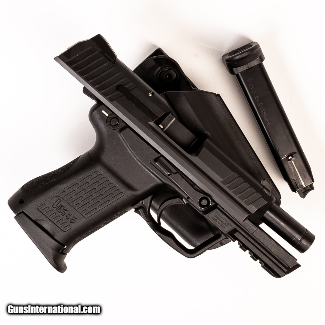 Description: Guns Listing ID: 469049 A compact variant of the legendary HK 45 and the USP before that, the Heckler & Koch 45C is a durable and dependable sidearm that has seen extensive use by SEALS, Naval Special Warfare personnel, DOD Contractors, and countless private citizens. They‚‚re one of the best .45acp semi-auto‚‚s on the market and are notorious for taking a beating and still running flawlessly. 2-8 round magazines, the original case, manual, and a Safariland right hand OWB holster are include SOLD Manufacturer: H&K Model: 45C Caliber Info: .45 ACP Condition: Used - Certified Barrels: 3.9 BARREL Finish: BLACK |