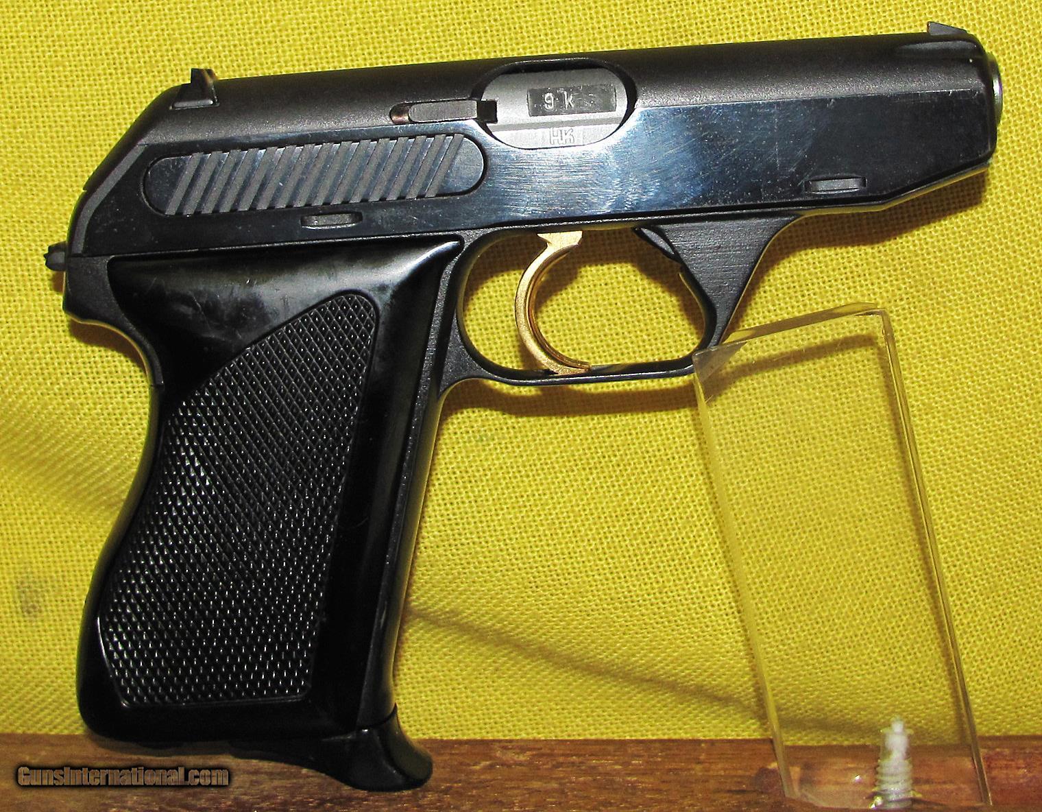 Description: H&K HK-4 IN .380 ACP CAL., WITH 3 1/4" BARREL. COLOR BLUE. CONDITION 96%. SERIAL NUMBER HR00837. HECKLER & KOCH (H&R IMPORT) MODEL KH-4, COMES WITH ONE FACTORY MAGAZINE, MIRROR BORE, GOLD PLATED PANEL AND TRIGGER, GRIPS EXCELLENT, 96% OVERALL CONDITION. OUR STOCK # D33998. OUR OLD STOCK # YA12045 SOLD |