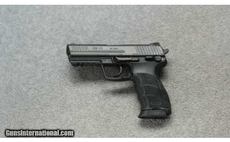 Description: H&K HK45 .45 A.C.P. This gun has been very lightly fired. The bore is bright with good rifling. The exterior shows very little wear. SOLD Metal Condition: Near New Bore Condition: Near New Barrels: 4 1/2" Self Bushed Triggers: Double Action/Single Action/Decocker Stock: Wraparound Composite Fore End: 3 Finger Groove Butt Pad: Arched Weight: 2 Lbs. Sights: Three Dot Tritium Chokes: Light Rail Extras: Hard Case, 7 Extra Magazines, Lock, Grip Spacers. Item Location: Glendale, AZ |