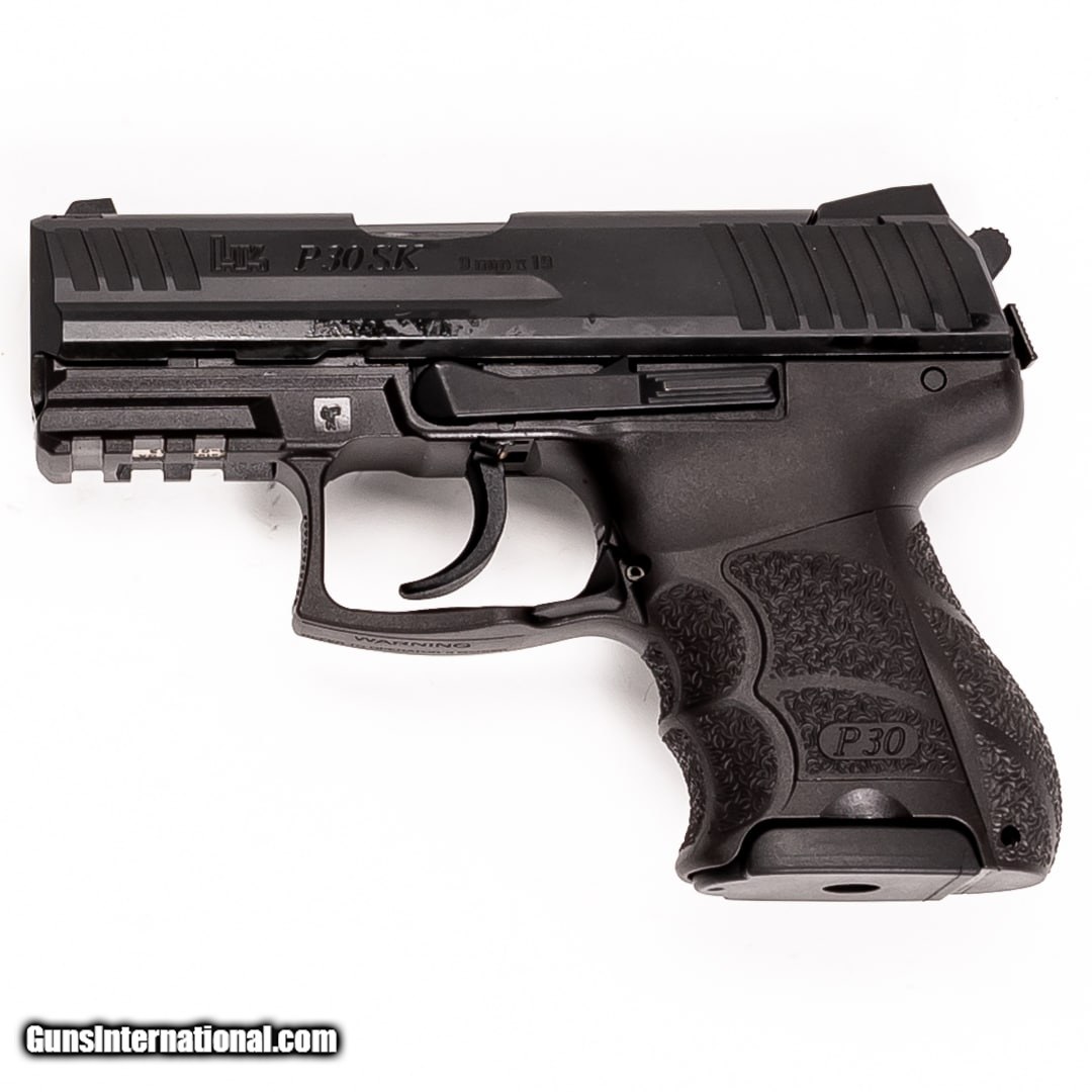 Description: Guns Listing ID: 313386 The H&K P30SK is a semi-automatic concealed carry handgun known for its safety, accuracy and reliability. This is a great example of, \"you get what you pay for\" as the P30SK isn‚‚t the cheapest pistol on the market but it is by all accounts, solid and dependable. 2-10 round magazines, all side panels, backstraps, the original case, and a loader are included SOLD Manufacturer: H&K Model: P30SK Caliber Info: 9MM LUGER (9X19 PARA) Condition: Used - Certified Barrels: 3.3 BARREL Finish: BLACK |