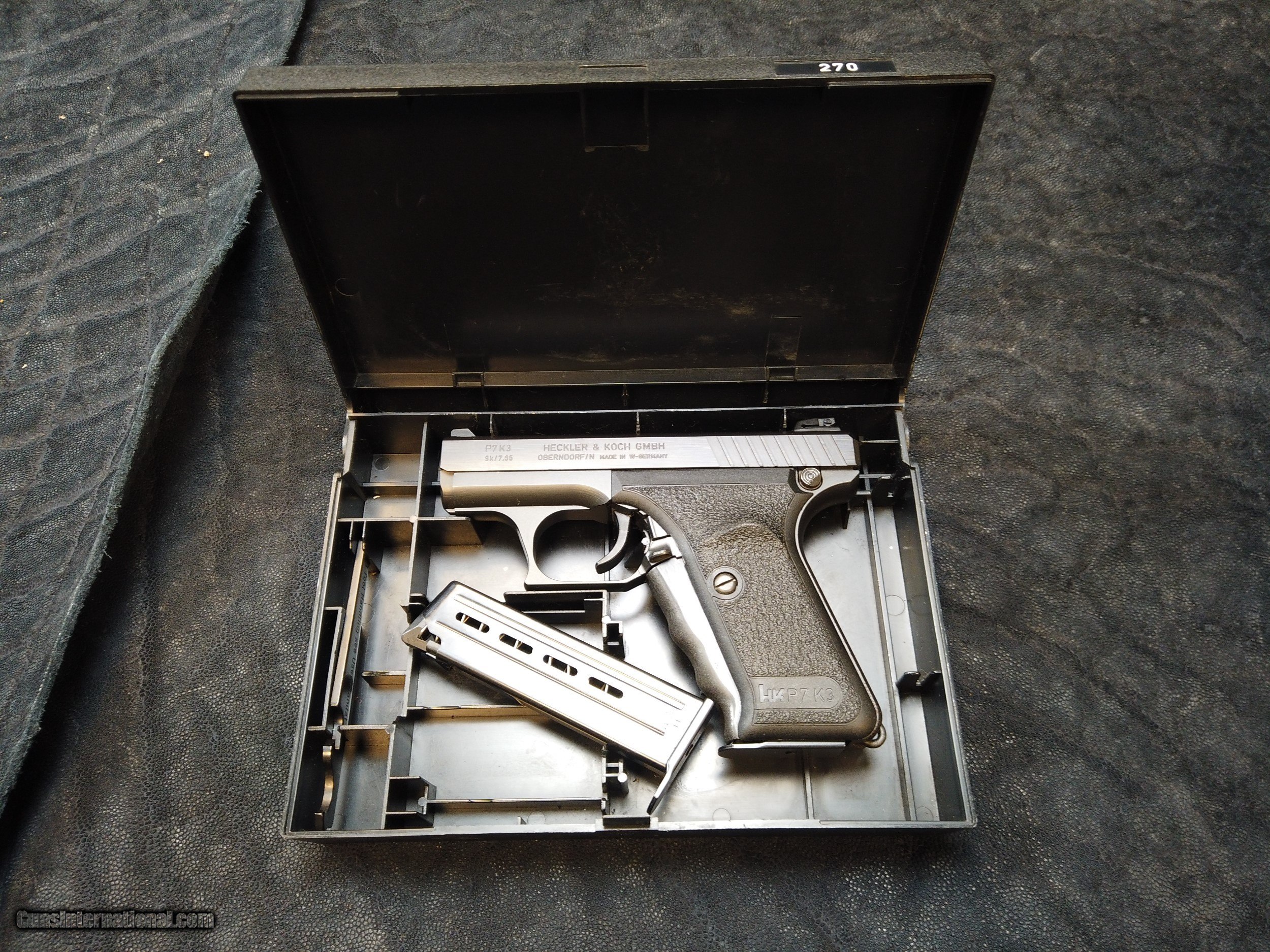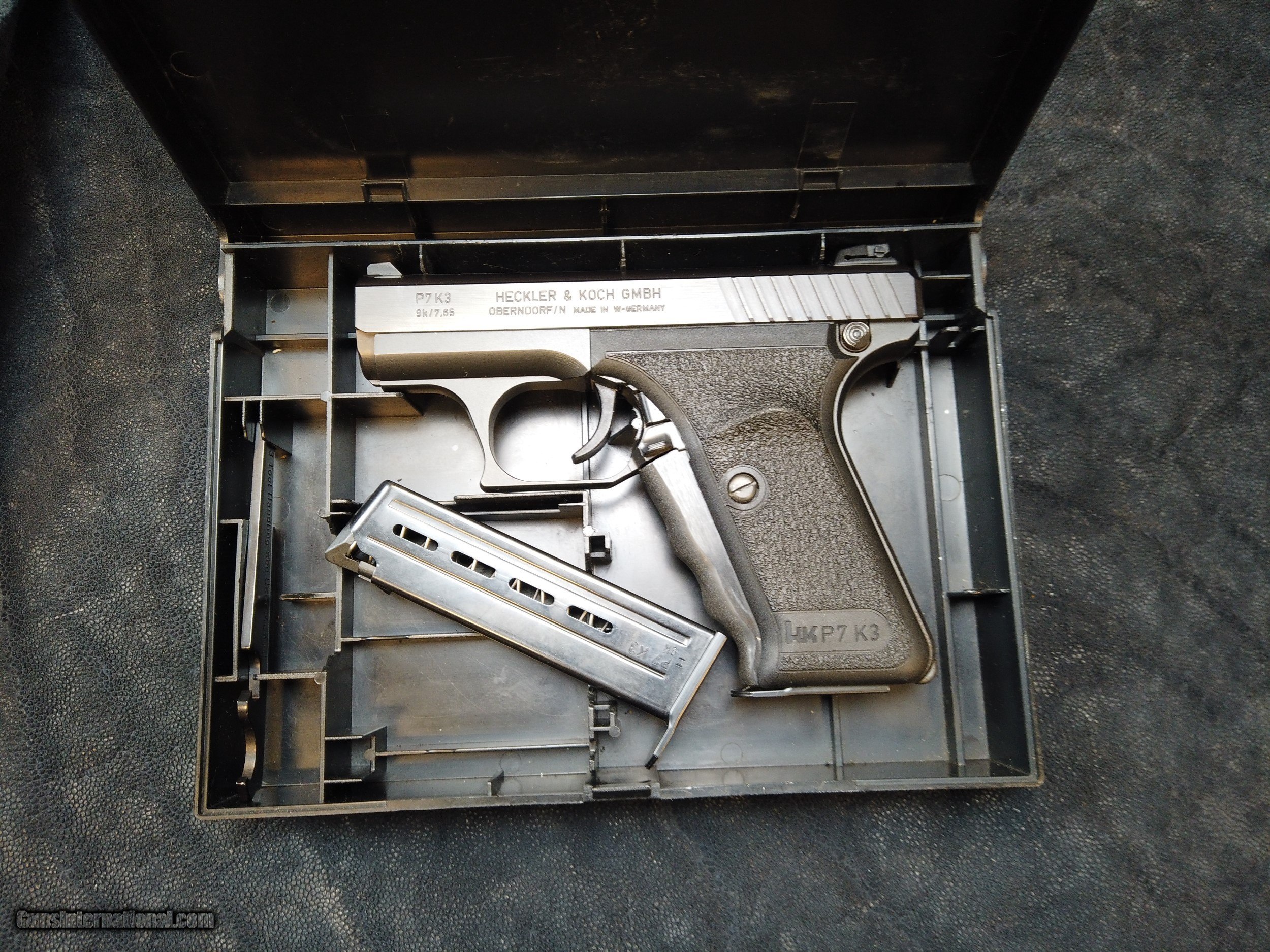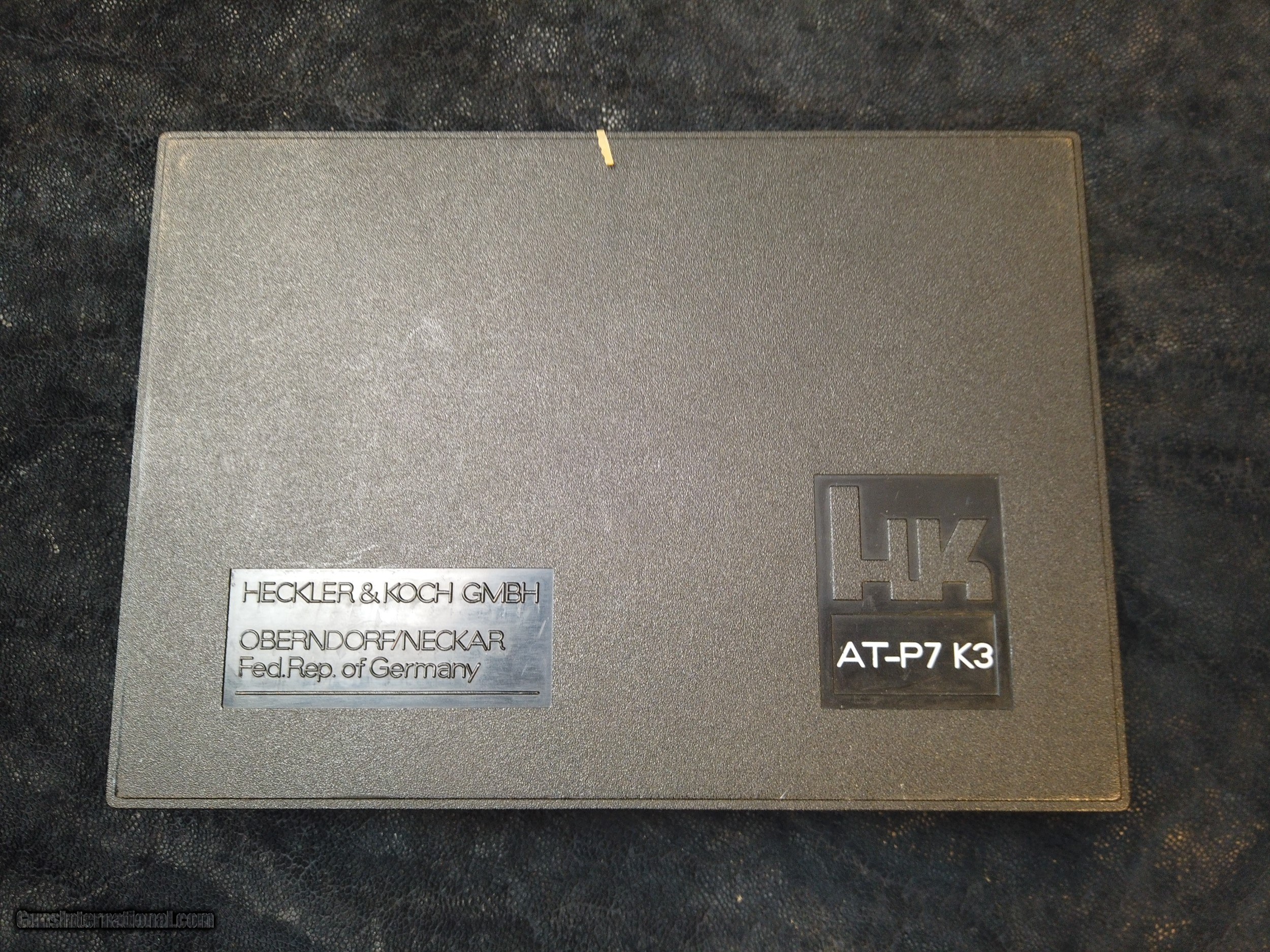 Description: Hard to Find Heckler & Kock P7 K3 in 7.65 x 9mm Short & 22 LR two barrel set. Each caliber comes with two mags and tool set. SOLD |