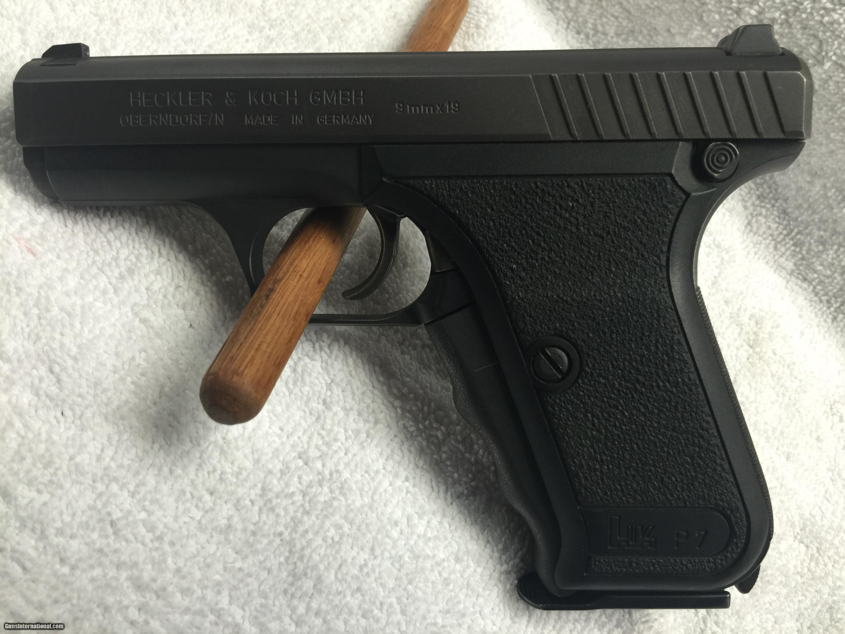 Description: Early H & K P7 9MM With 8 Shot Clip Condition: 95 Percent Plus Serial # 35XXX SOLD |