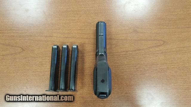 Description: H&K P7 PSP 9mm, SFO, older variation of the P7 M8, European style magazine release. 98% overall, total of 4 8rd magazines, clean sharp bore, tight action and a great trigger, 3 dot sights. Add 3% for C/C S&H $25.00 SOLD Manufacturer: H&K Model: P7 Serial Number: 19277 Caliber Info: 9mm |