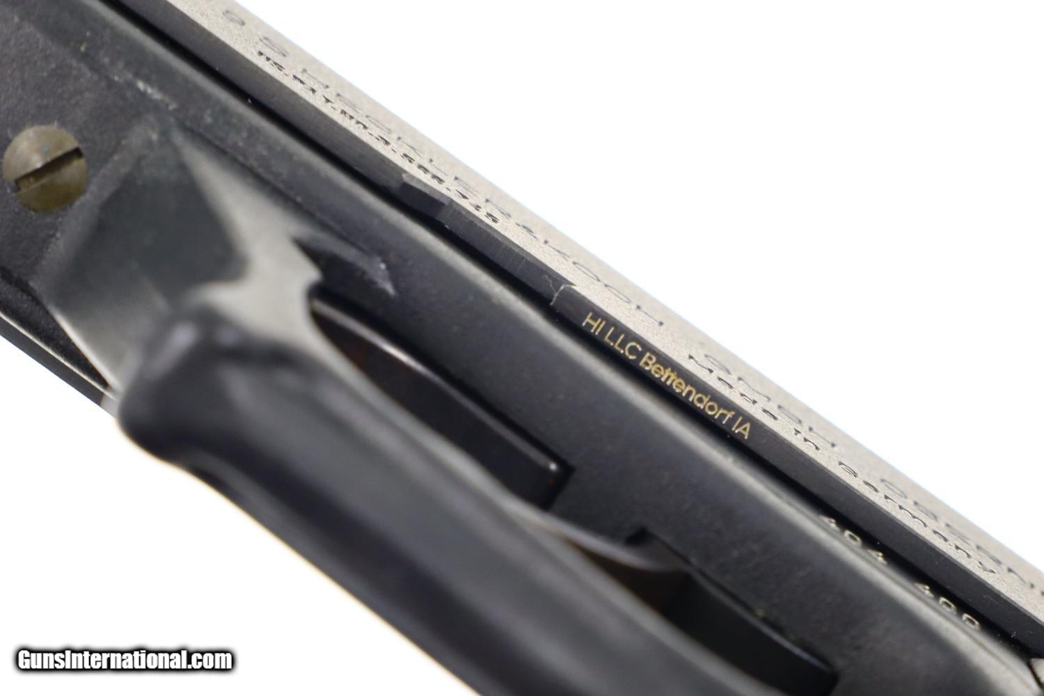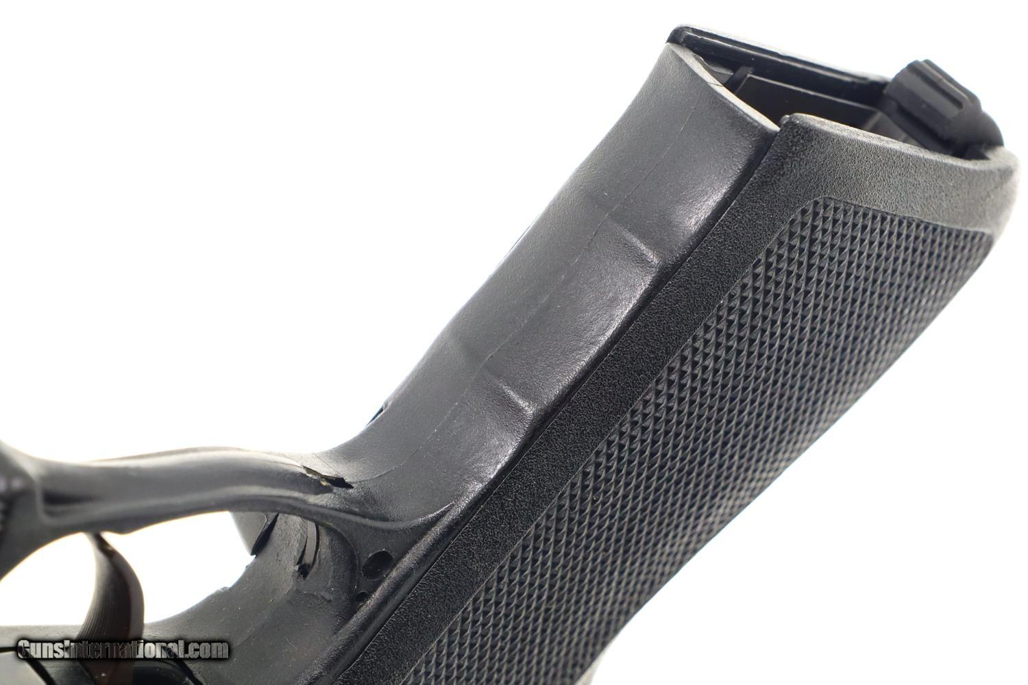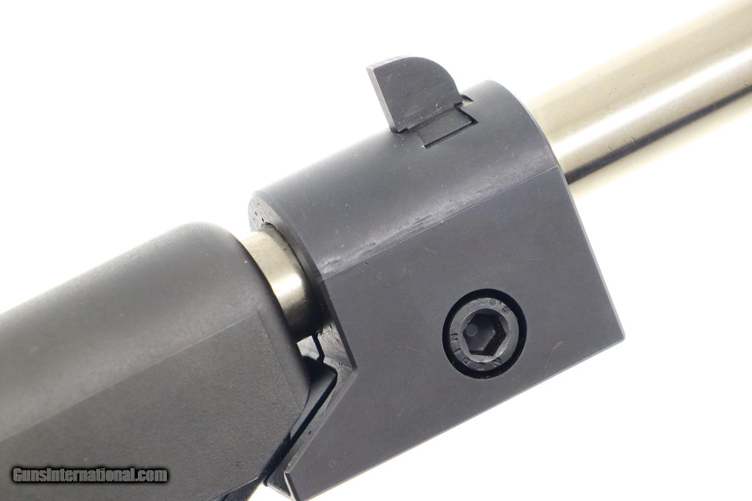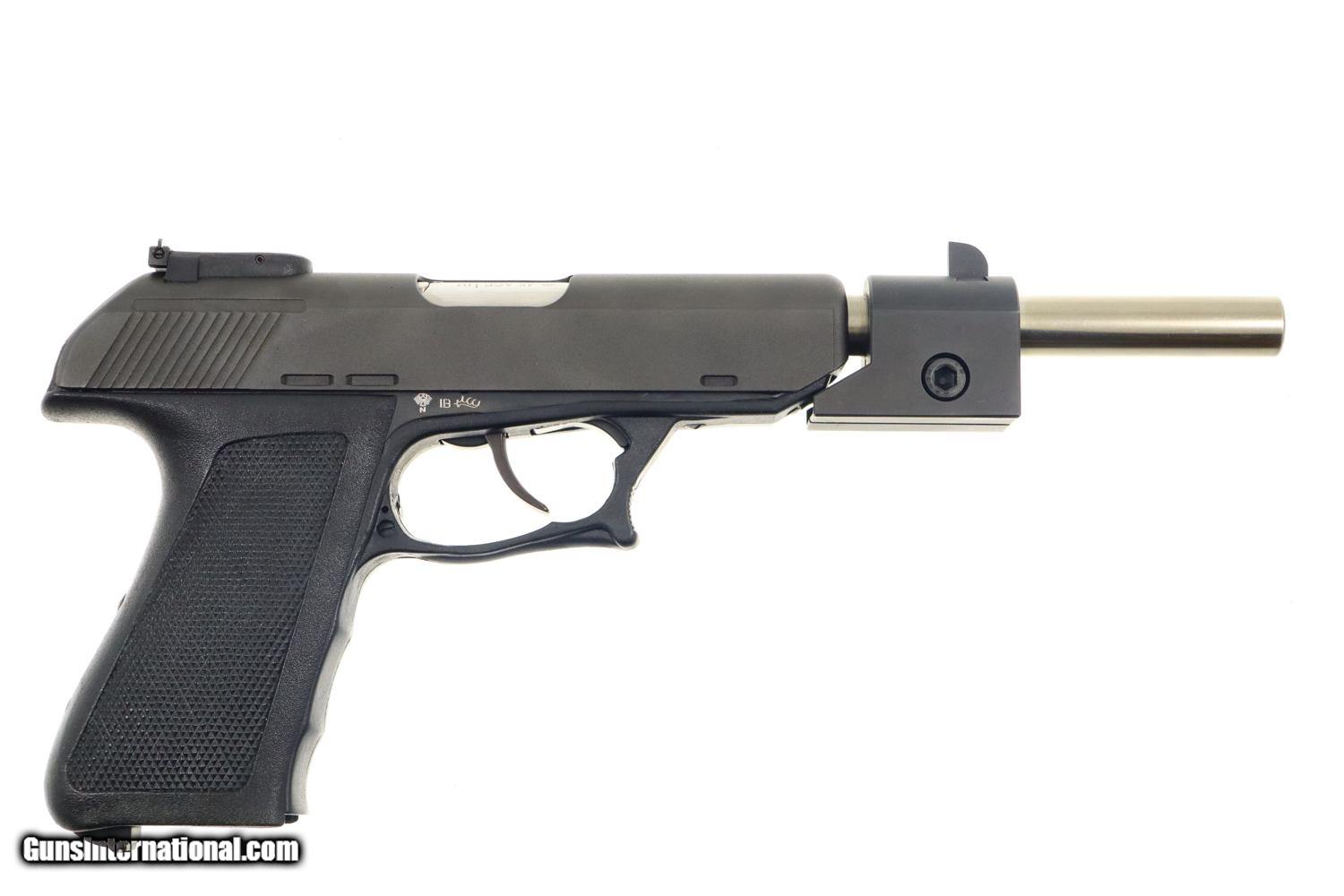 Description: Synopsis: H&K P9S, Target Sport Pistol, .45 ACP, Counterweight, #404400, FB00901 Description: Very scarce and super desirable H&K P9S Target Pistol in .45 ACP, made 1981, with extended barrel and "Sport" marked counterweight. SN: 404400. The pistol has a 7.5” barrel, fully adjustable sights and extended barrel with counterweight. Left side of slide marked with the usual H&K Mod P9S legend along with serial number and Eagle/N proofing. Serial number repeated on the left side of the frame. Barrel hood marked with caliber, manufacturer and proof. Right side of frame with usual proof marks. Polymer frame and grip secured on back with two screws. Original H&K magazine (not photographed) drilled with six indicator holes and having a detachable base. Complete with generic styrofoam shipping sleeve, original instruction booklet, and allen head wrench. Condition: EXC+ condition. Mirror bore. Perfect manual mechanics. A very impressive target pistol with literature and accessories! ~~Insured shipping fee of $65; most packages shipped using FedEx 2nd Day.~~ SOLD Manufacturer: H&K Serial Number: 404400 Caliber Info: .45ACP |