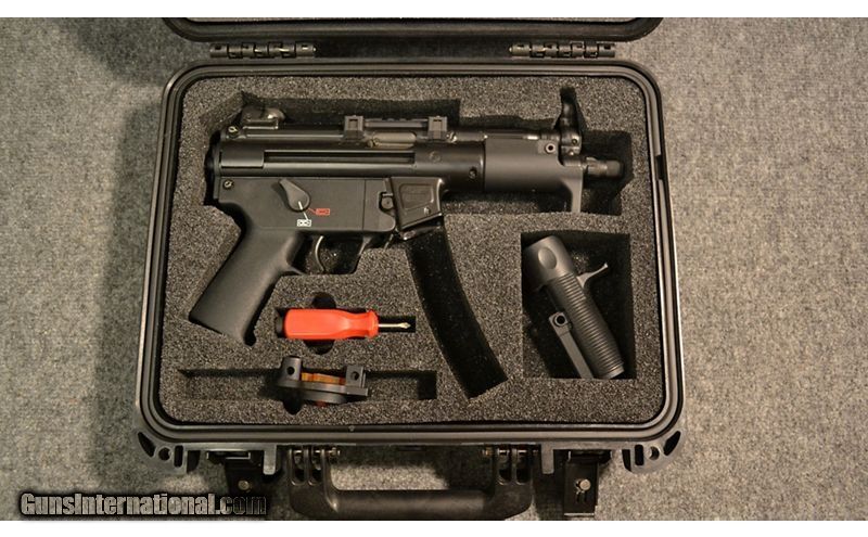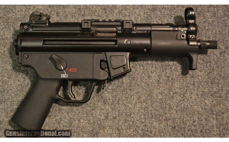 Description: H & K model SP5K chambered in 9 mm Luger. This pistol does not come with a magazine, but they are readily available. The SP5K was developed by Heckler & Koch as a semiautomatic, civilian sporting pistol that matches the look and feel of the famous MP5K submachine gun. With the roller delayed blowback system accuracy is exceptional. Originally developed on the Heckler & Koch G3 rifle, it has been used on several HK firearms. The SP5K retains many of the critical features of the MP5, including its precision machined components and attention-to-detail quality. The SP5K is manufactured completely in Heckler & Koch's Oberndorf factory in southwest Germany. It an excellent choice for target shooting and an ideal home security arm. 9mm Luger SOLD Chambers: 1 Metal Condition: "Excellent, minor signs of use Wood Condition: Excellent Bore Condition: Excellent Barrels: 4 1/2 Triggers: Factory Weight: 4 1/2 lbs Sights: """U"" notch Item Location: Thornton, CO |