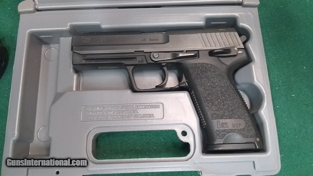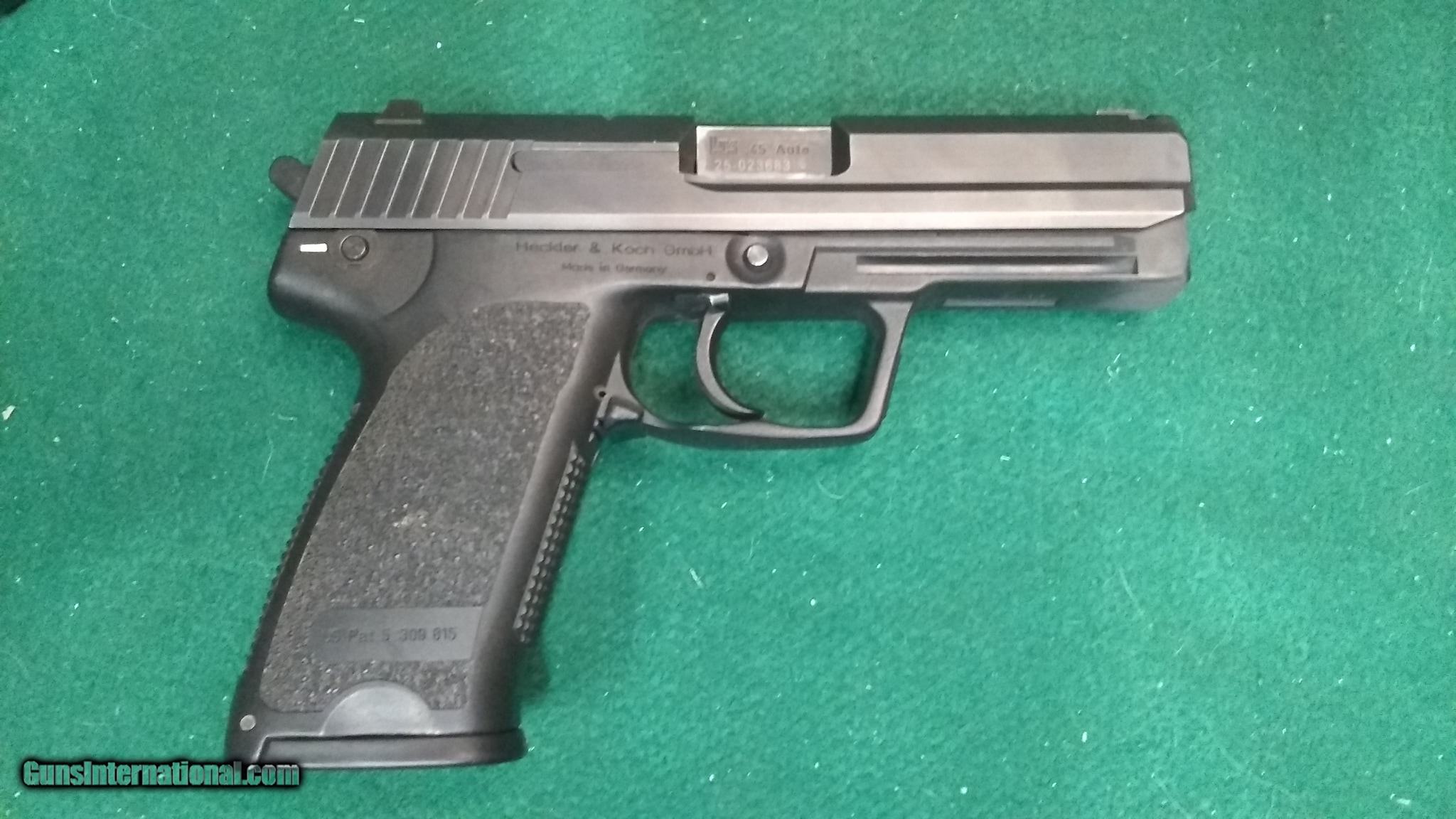Description: Guns Listing ID: 631312 This H&K USP is chambered in 45ACP and has a 4.25\" barrel. This variant is a DA/SA with a decocker and no safety. This gun has three dot sights and comes with one 10rd. magazine. Original case included. Condition is very good. SOLD Manufacturer: H&K Model: USP 45 Caliber Info: .45 ACP Condition: Used - Non-Certified Barrels: 4.5 BARREL Finish: BLACK |