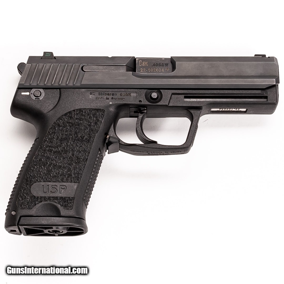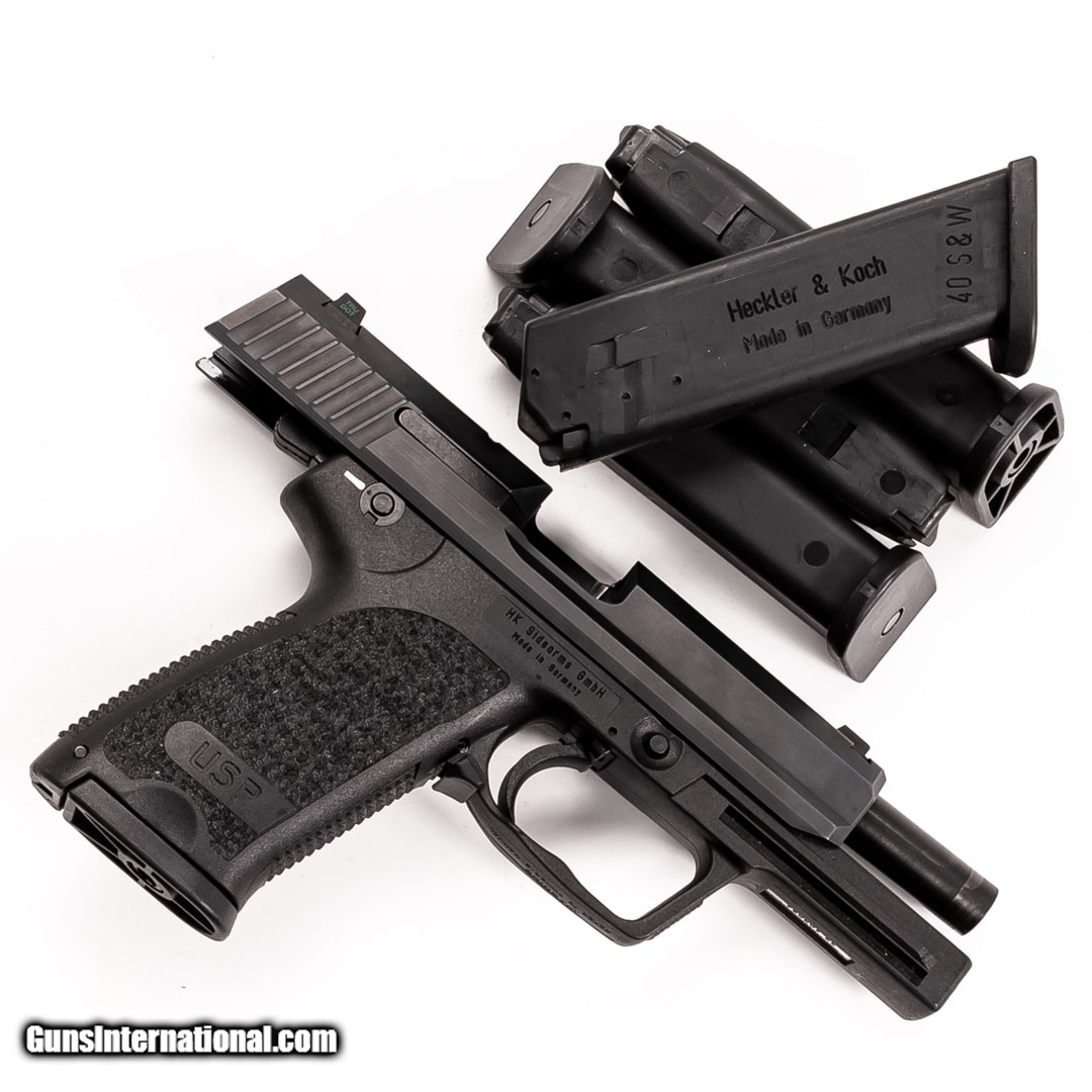 Description: Guns Listing ID: 258191 The Heckler & Koch USP has a legendary reputation in the tactical community, known for its incredible reliability, durability, and accuracy even after continuous use and abuse in harsh terrain. The USP uses a single/double action trigger with a manual safety to allow several different carrying conditions. This pistol is in very good condition and comes with the original case, manual, two 10-round magazines, and three 13-round magazines. SOLD Manufacturer: H&K Model: USP Caliber Info: .40 S&W Condition: Used - Certified Barrels: 4.4 BARREL Finish: BLACK |