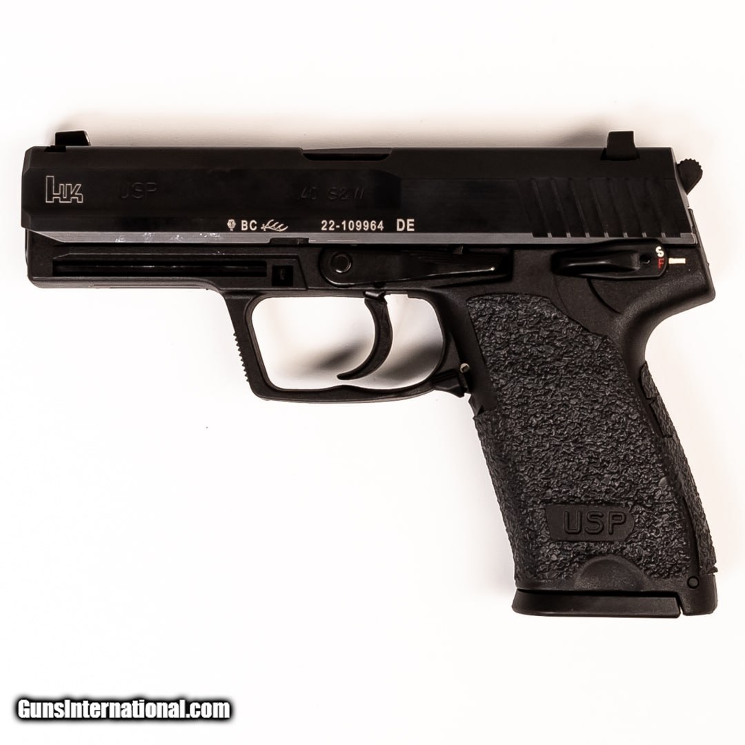 Description: Guns Listing ID: 528217 Heckler & Koch USP pistols have a legendary reputation in the tactical community. They‚‚re known for incredible reliability, durability, and accuracy even after continuous use and abuse in harsh conditions. This USP is chambered in .40 S&W. 2-13 round magazines, the original case, manual, and lock-out tool are included SOLD Manufacturer: H&K Model: USP Caliber Info: .40 S&W Condition: Used - Certified Barrels: 4 BARREL Finish: BLACK |