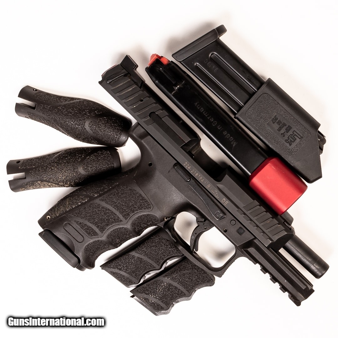 Description: Guns Listing ID: 427050 An ergonomically pleasing semi-automatic handgun, this Heckler & Koch VP9 is chambered in 9mm and is suitable for recreation, duty use, and personal protection. It‚‚s chock full of features and sure to serve you well! This VP9 is equipped with Trijicon HD night sights. The plastic firing pin has been replaced with an alloy firing pin, the factory spring was replaced with a lighter weight spring, and the rear slide cap was replaced with a cherry red alloy one. The original sights, spring, firing pin, and rear slide cap are included. Purchase also includes two 15-round magazines, one 20-round magazine with cherry extension, two rear handguards, four side handguards, a speed loader, and an Allen wrench SOLD Manufacturer: H&K Model: VP 9 Caliber Info: 9MM LUGER (9X19 PARA) Condition: Used - Certified Barrels: 4.1 BARREL Finish: BLACK |