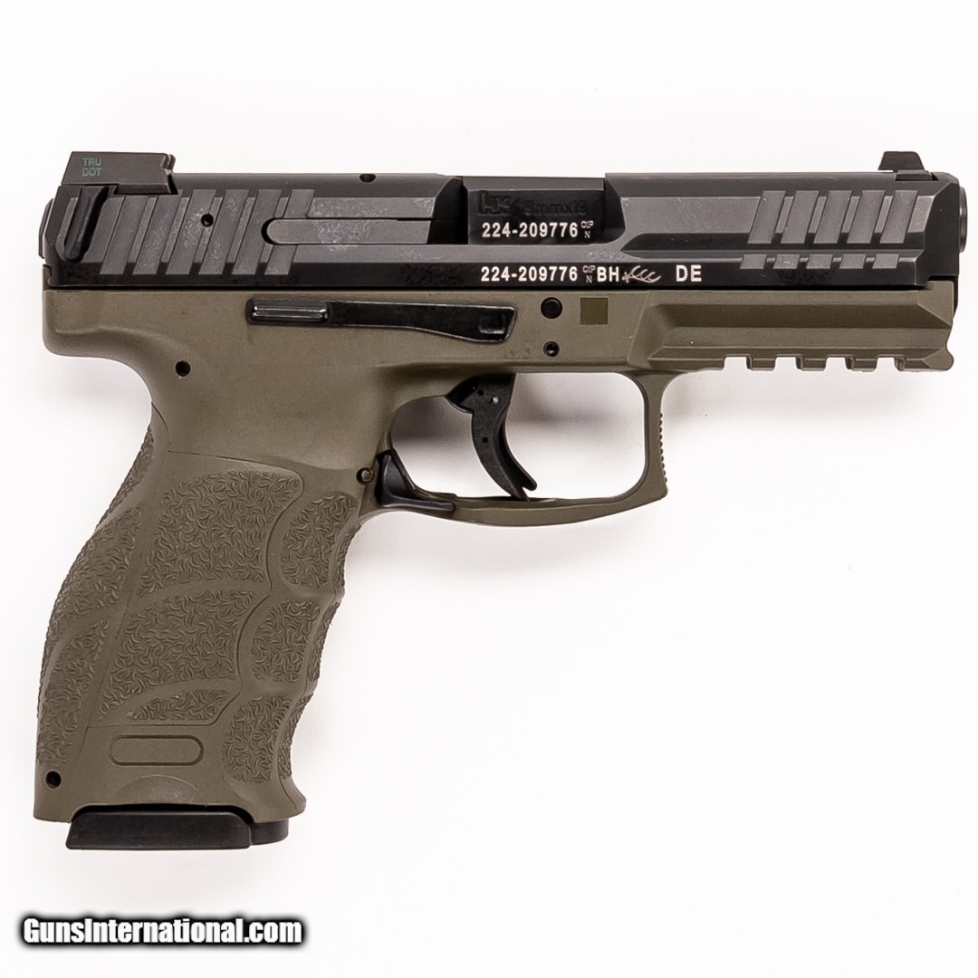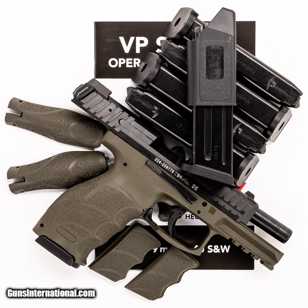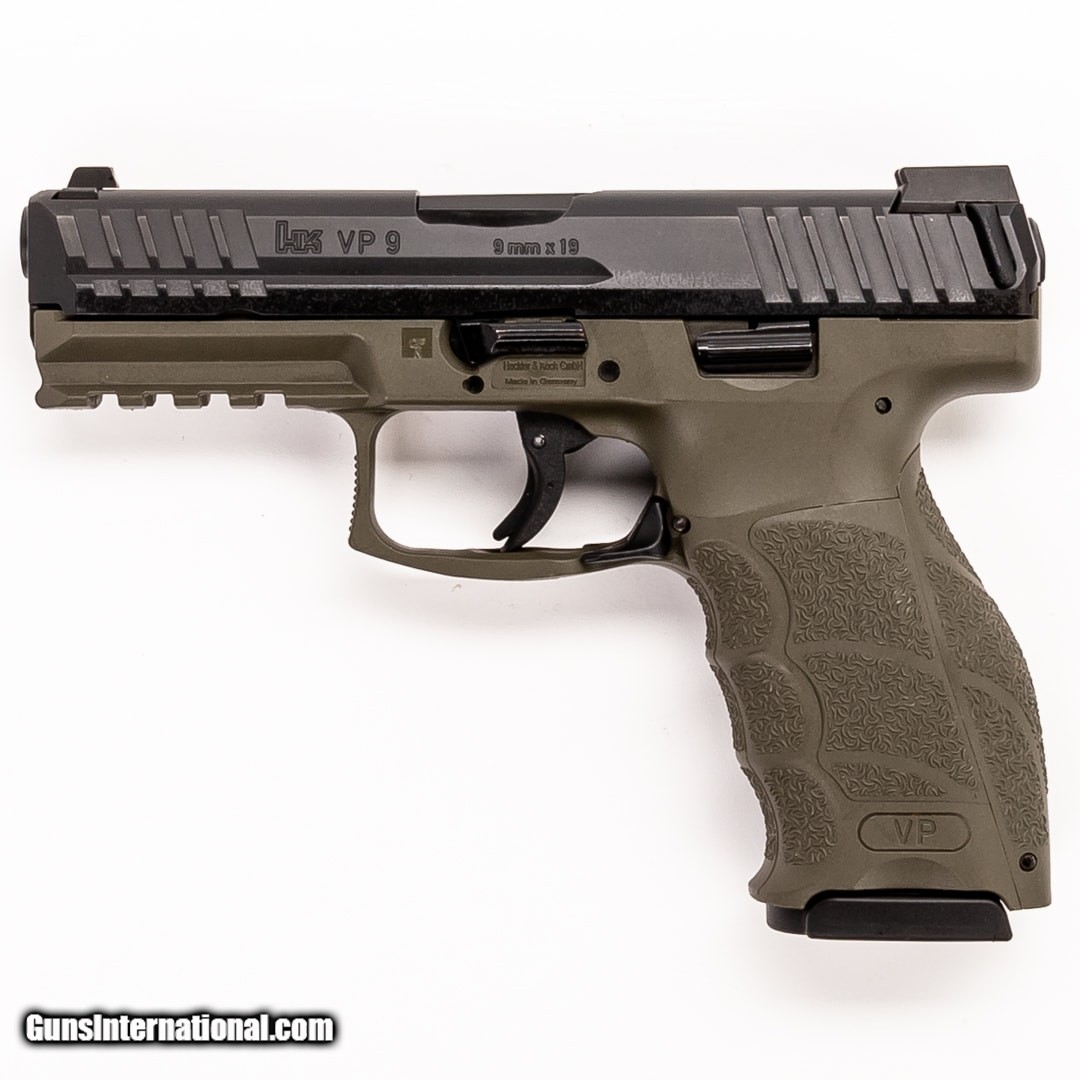 Description: Guns Listing ID: 362340 An ergonomically pleasing semi-automatic handgun, this Heckler & Koch VP9 is chambered in 9mm and is suitable for recreation, duty use, and personal protection. It features a superior trigger design with a light pull, clean break, and a short, positive reset. It sports a polymer frame, textured grip with finger grooves for a secure grasp through each round fired, and easy-to-use sights. The integral rail forward of the trigger guard is ready for your favorite accessories. Other features of the VP9 include a push-button style mag release option, firing pin block safety, and trigger latch safety. This VP9 is equipped with night sights and is in very good condition! Purchase includes the original case, manual, six 15-round magazines, back/side straps, and a loader. SOLD Manufacturer: H&K Model: VP9 Caliber Info: 9MM LUGER (9X19 PARA) Condition: Used - Certified Barrels: 4.1 BARREL Finish: BLACK AND GREEN |