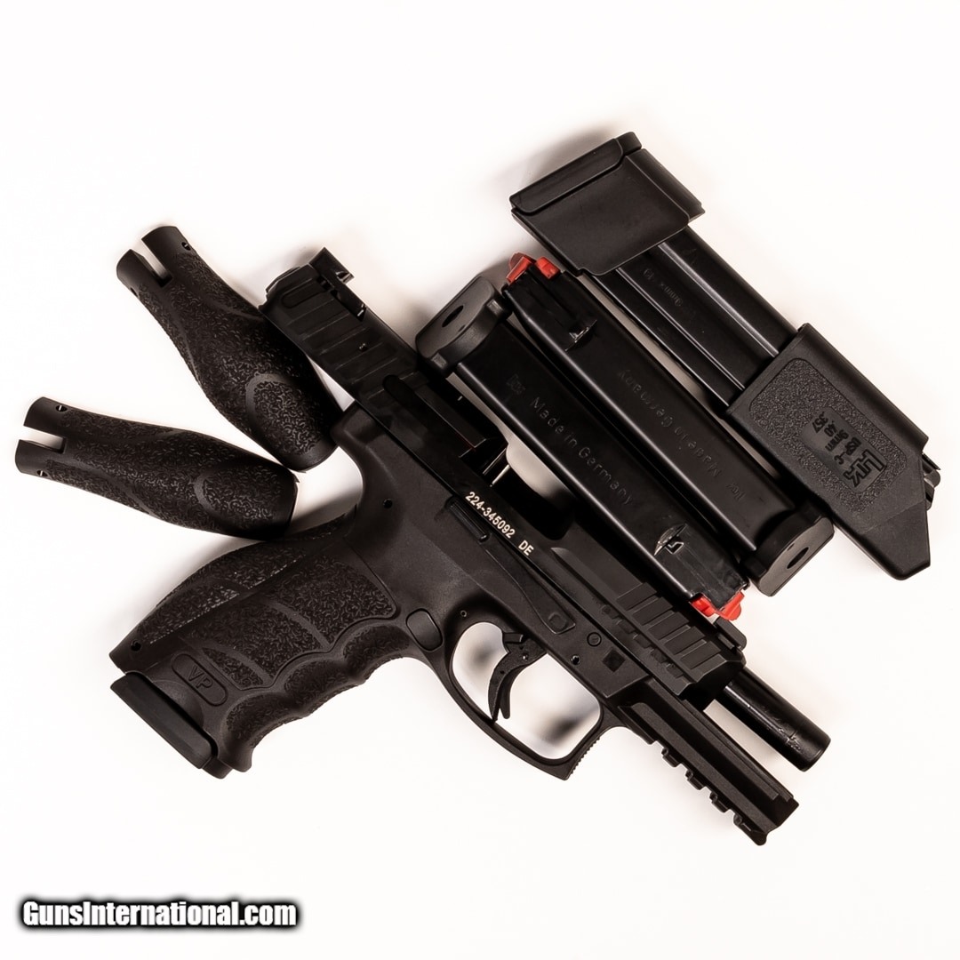 Description: Guns Listing ID: 513308 Experience gained by HK engineers with the P30 hammer-fired pistol had a direct influence on the design of the VP9, but the VP9 breaks new ground with its integration of a unique striker firing system with an enhanced HK \"light pull\" trigger. Theresult is a pistol with custom-fit ergonomics and trigger quality unequaled in any production striker fired handgun. This HK VP9 will make and excellent personal protection sidearm that is comfortable and ergonomic. The VP9 comes standard with night sights. This handgun features two sets of night sights, three 17-round magazines, backstraps, and the original case. SOLD Manufacturer: H&K Model: VP9 Caliber Info: 9MM LUGER Condition: Used - Certified Barrels: 4.1 BARREL Finish: BLACK |