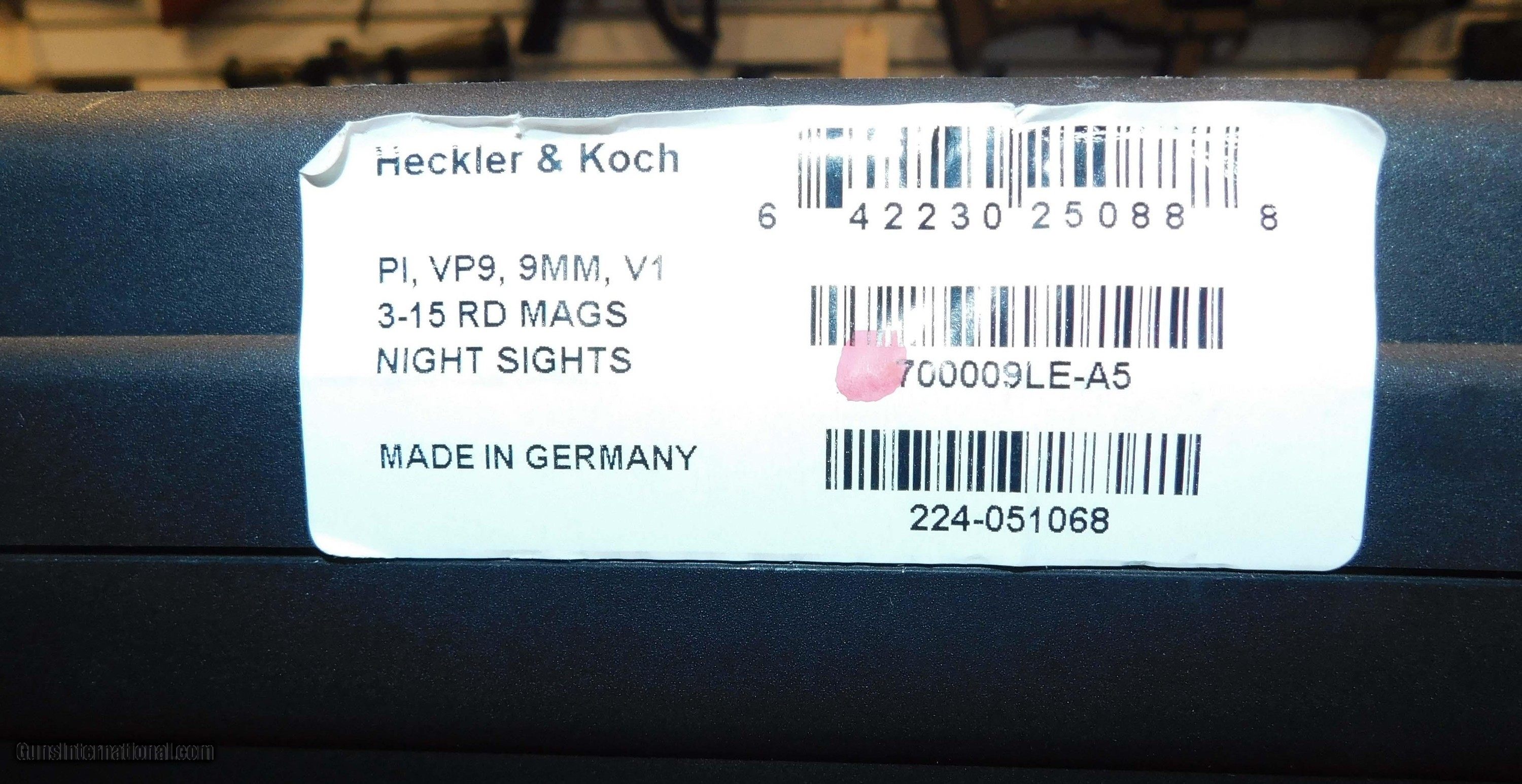 Description: H&K VP9 IN 9MM CAL., WITH 4" BARREL. COLOR BLACK. CONDITION 98%. SERIAL NUMBER 224-051068. H&K MODEL VP9 IN 9MM CALIBER, MIRROR BORE, COMES WITH THREE FIFTEEN ROUND MAGAZINES, HARD CASE WITH ALL REPLACEMENT BACK STRAPS AND PAPERWORK, NOT FOR SALE IN MASS.,98% OVERALL CONDITION, OUR STOCK # D4106 SOLD |