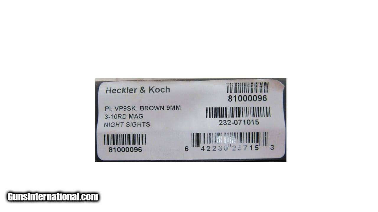 Description: Guns Listing ID: 527887 H&K VP9SK 9MM 10 ROUND MAG 3.25\" BARREL INCLUDES FACTORY CASE AND OWNER‚‚S MANUAL W/ 3 INTERCHANGEABLE BACKSTRAPS/SIDE PLATES + 2 ADDITIONAL FACTORY MAGS & SPEEDLOADER GREAT CONDITION SOLD Manufacturer: H&K Model: VP9SK Caliber Info: 9MM Condition: Used - Non-Certified Barrels: 3.25 BARREL Finish: FDE/BLACK |