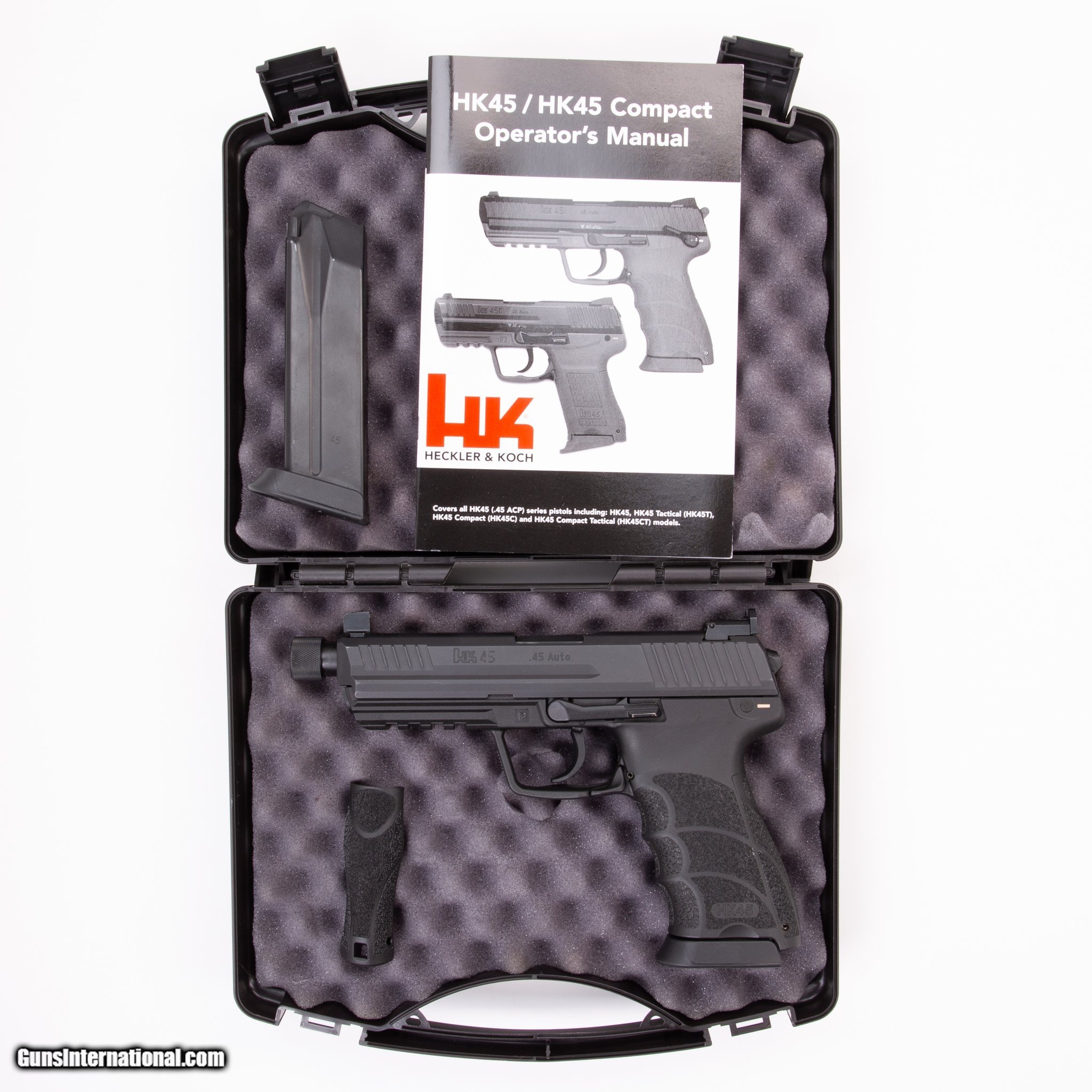 Description: Guns Listing ID: 469036 This H&K 45 has no thumb safety. It features a threaded barrel with protector and suppressor height front night sight. Purchase includes the original case, owner‚‚s manual, two 10-round magazines, an extra backstrap, and a lock-out key. Get the best bang for your buck when you get a Certified Used Firearm . When you see the Certified Used stamp on any of our firearms, you can be confident that you‚‚re getting exactly what you want – a gun only in very good to excellent condition and held to the highest quality standard. All Certified Used Guns come with a ‚‚no questions asked‚‚ return policy . PLUS, ALL CERTIFIED USED GUNS SHIP F SOLD Manufacturer: HECKLER & KOCH Model: 45 Caliber Info: .45 ACP Condition: Used - Certified Barrels: 5.25 Action: SEMI AUTOMATIC Finish: BLACK Weight: 2 |