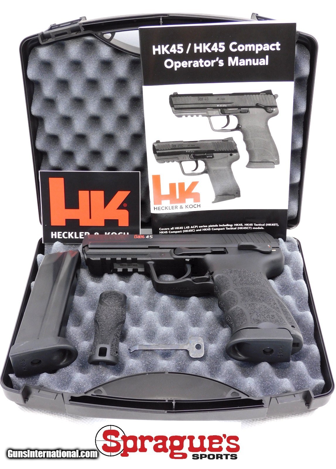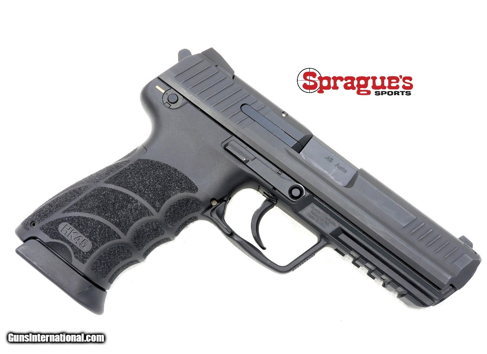 Description: Heckler & Koch 45 SA Pistol Manufacturer: Heckler & Koch Model: 45 Caliber: .45 ACP Barrel: 4.25", bright shiny bore, good rifling Rear Sight: Two dot square notch Front Sight: One dot Optic: N/A Finish: Black, very light handling marks Action: Semi-automatic, mechanically solid, fed by detachable magazines, front/rear cocking serrations, ambidextrous magazine and slide releases, thumb safety on left, very light handling marks Grips: Black textured and fingered, integral to the polymer frame, very light handling marks Accessories: Original box, manual, two 10 round magazines, 1 extra palm swell, 1 wrench, lanyard loop, 1 HK cable lock, very light handling marks Condition: This is an excellent used pistol with extra magazine, original box and accessories Serial Number: HKU041363 Sprague's Number: 141699 This handgun will be a GREAT addition to your future outings! All items are shipped with a signature required unless otherwise requested. In-house pictures are of the item(s) being ed and the item(s) that will be shipped to the highest ! If there are no boxes, documentation, accessories, etc. shown in the pictures or described in the description, they are not included. Any stock pictures will be labeled as such. We will do our best to answer all questions Monday through Saturday during business hours, but are CLOSED ON SUNDAY. Buyers are responsible to ensure that you have fully reviewed the listing before . Buyers are responsible to know and ensure that they are in compliance with local, state, and federal regulations/laws and are of legal age for items purchased. We have not test fired any firearms unless specifically noted in the description. Have a GREAT SAFE HEALTHY day! Add 3% for Credit Card Shipping $35.00 in the 48 contiguoous United States SOLD |