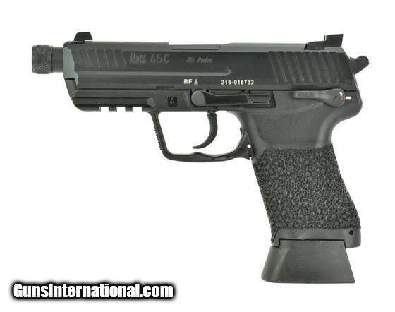 Description: HK 45C .45 ACP caliber pistol. Compact model with Trijicon night sights, threaded barrel, decocker and box. Excellent condition.