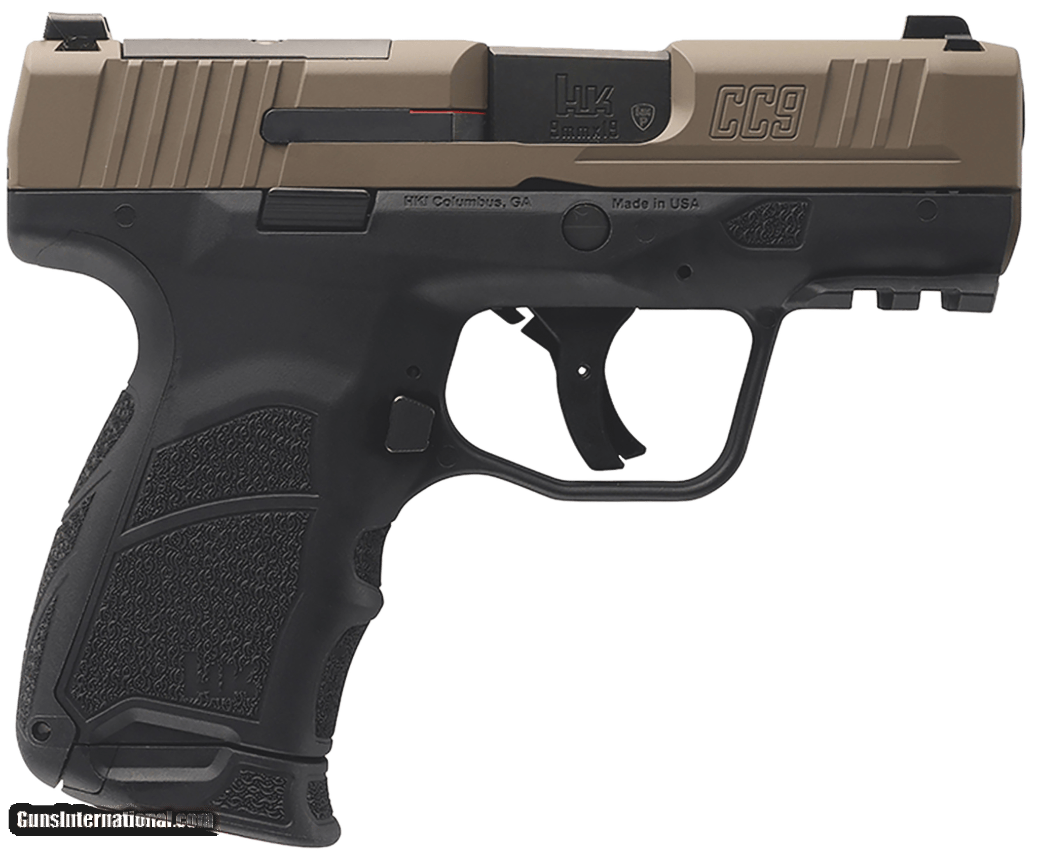 Description: Guns Listing ID: 550881 HK CC9 9mm Luger 12+1 3.32\" Black Polygonal Rifled Barrel, Flat Dark Earth Cerakote Optic Ready/Serrated Steel Slide, Flat Dark Earth Polymer Frame w/Picatinny Rail, Interchangeable Backstrap Grip, Ambidextrous The CC9 is HKs smallest double-stack handgun. Its small features mirrored ambidextrous controls; picatinny-style rail; optics-ready slide; 5lb trigger has a crisp wall and reset; factory included night-sight and a grip with two interchangeable backstraps. Includes 10rd and 12rd magazine. SOLD Manufacturer: HECKLER & KOCH Model: CC9 Caliber Info: 9MM LUGER (9x19 PARA) Condition: new Barrels: 3.32 BARREL Action: SEMI AUTOMATIC Finish: black/flat dark eart |