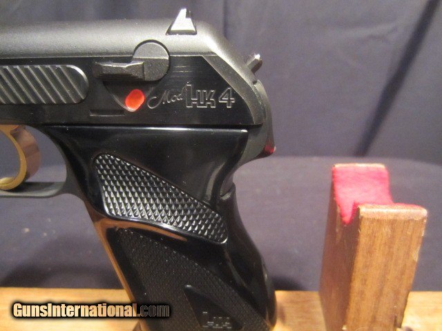 Description: HECKLER & KOCH GMBH MODEL HK4 MADE IN GERMANY SERIAL NUMBER 21273 CALIBER 9 KURZ ((380 AUTO)) WITH 22 CAL CONVERSION KIT. BOTH BARRELS NUMBERED TO PISTOL. 2 9 K MAGS AND ONE 22 CAL MAG PISTOL DATE 1972, GOLD TRIGGER , SLIDE MARKED SACO ARL VA. CONDITION LIKE NEW NO BO OR PAPERS. WANT MORE INFORMATION ALWAYS BEST TO CALL OUR OFFICE 716-941-946 SOLD |