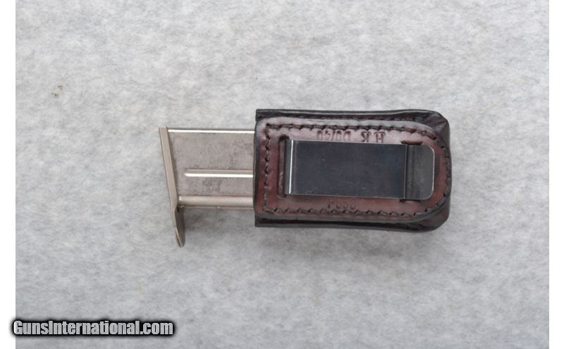 Description: SOLD Manufacturer: S/N 021-1549 Made in West Germany. Caliber Info: .40 S&W Chambers: Two magazines. Metal Condition: Very good. Needs a good cleaning. Bore Condition: Excellent. Barrels: 4 inches. Matte stainless steel slide. Stock: Textured black polymer grip. Weight: 42 oz. Sights: Blade front. Notch rear. 3 white dot. Extras: Leather Holster. Leather clip on magazine holder. Item Location: Richfield, WI |