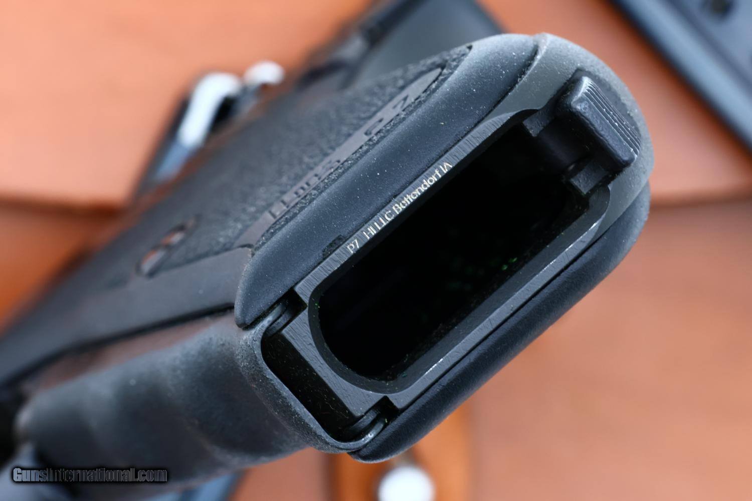 Description: Synopsis: Beautiful, Virtually New, H&K P7 made 1981 with paired magazines both dated 1980, complete with leather holster and leather carrying case, the latter made by Stucki in Switzerland 1988. Description: Standard configuration H&K P7 with 4.1 inch barrel and white-dotted night sights. Left side of slide with company address and caliber. Full serial number on the right side of slide and frame along with assembly code of “IB" reflecting proofing of 1981. Separate textured grips, the left panel marked “HK P7”. Bottom magazine release, the magazines drilled with 7 indicator holes sequentially numbered 2-8, the left side marked “P7 9x19", both coded "IA". Complete with holster made by Sickinger and large leather carrying case made by Stucki in Switzerland in 1988. Condition: The pistol is virtually new, magazines with only minimal insertional wear. Mirror bore. Perfect manual mechanics. EXC holster and near new carrying case. A wonderful pistol/spare mag that can only be improved by finding an example that was NIB. SOLD Manufacturer: Heckler & Koch Model: P7 Serial Number: 18288 Caliber Info: 9mm Condition: Virtually New |