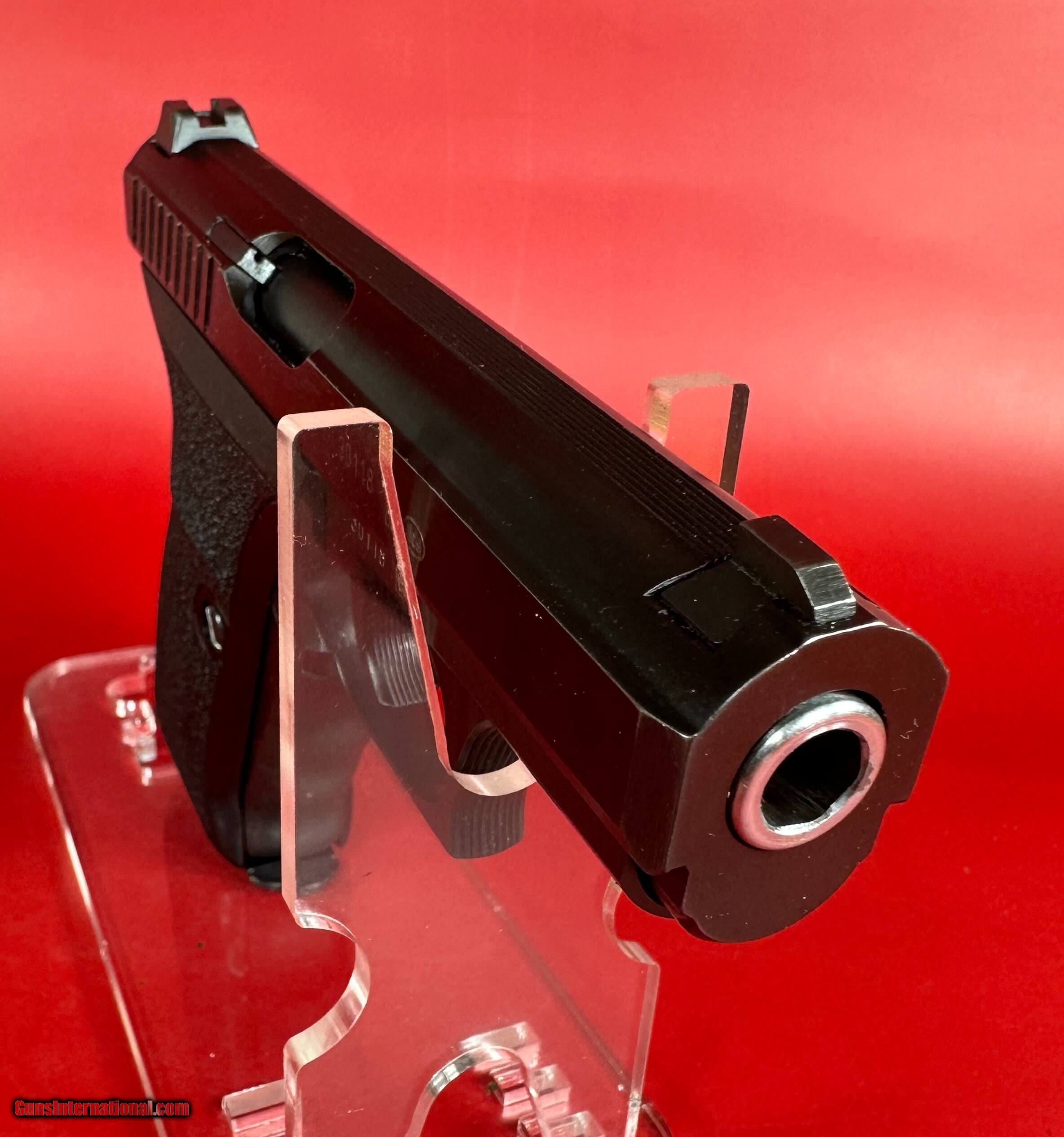 Description: Own the original! For sale H&K P7 PSP pistol chambered in 9mm with 4.1" barrel. P7 design is based on the Barnitzke system, a gas-retarded blowback system that utilizes bleed-off gases from each round fired to drive an operating rod which cycles the slide. In many ways this system is similar to modern piston driven rifles (AK and AR ) but in other ways the system is unique. The sale includes original box serialized to the gun, manual, 2 original mags, take down tool, gas chamber cleaning brush. The gun is in excellent condition: bore is mirror bright, metal finish is at about 98%, grips are at about 98%. Please refer to the pictures. Don't miss this chance to add a piece of firearms history to your collection. LAYAWAY AND PAYMENT PLAN ARE AVAILABLE P7 PSP, P7M8, P7M10, P7M13 Handgun Caliber: 9x19mm Parabellum (9mm Luger, 9x19mm NATO) Price: $3,299.00 Shipping: $50.00 Contact Seller |