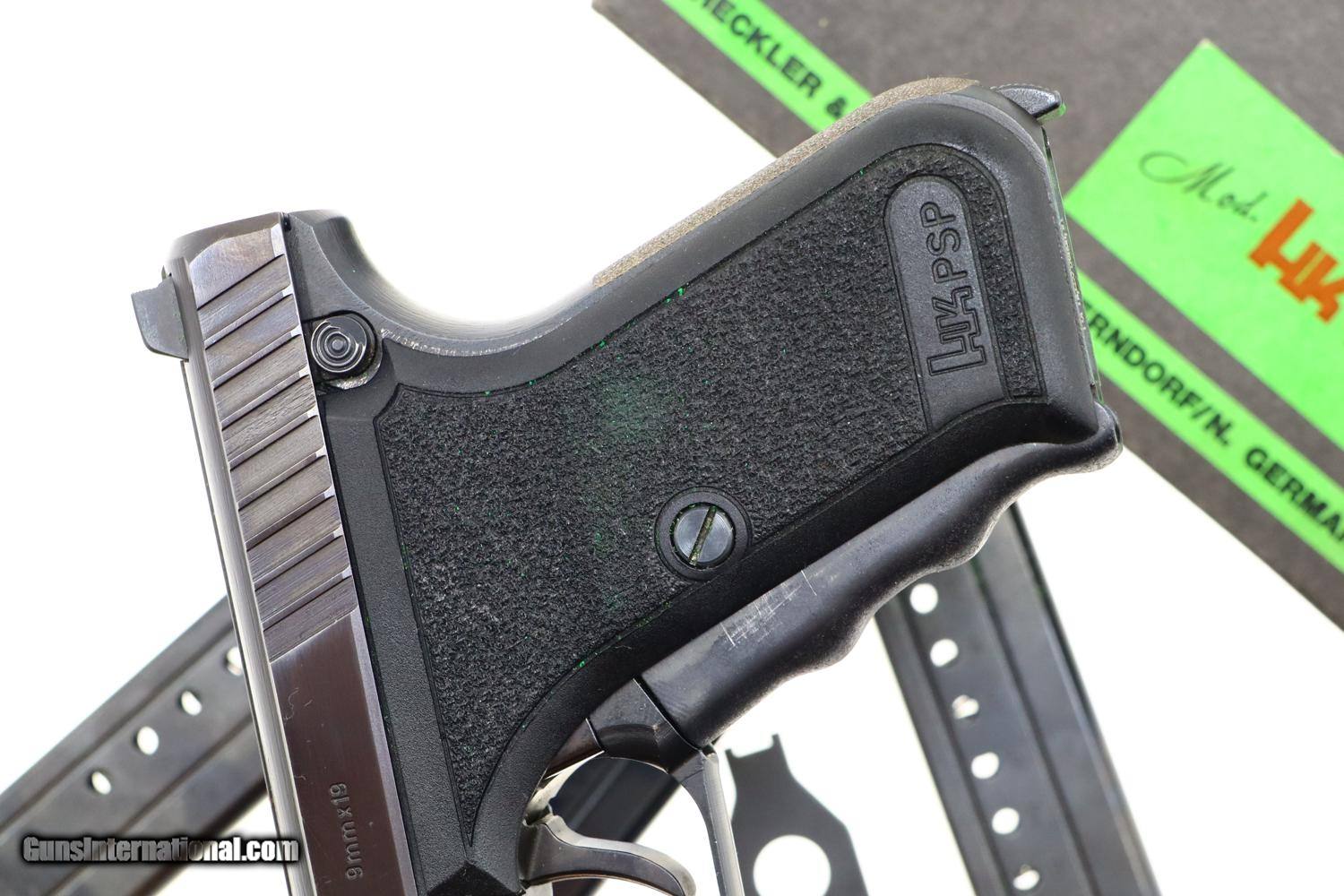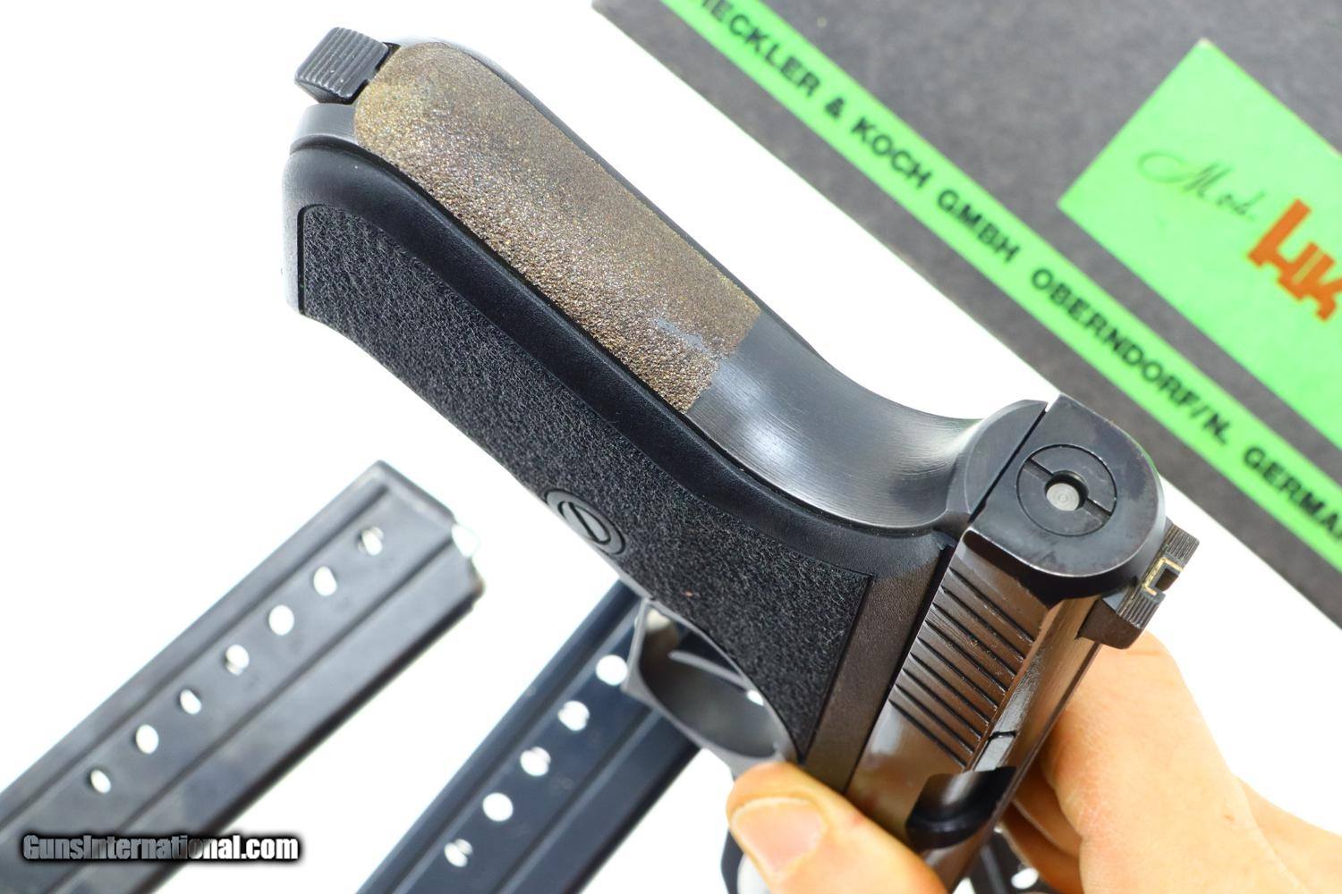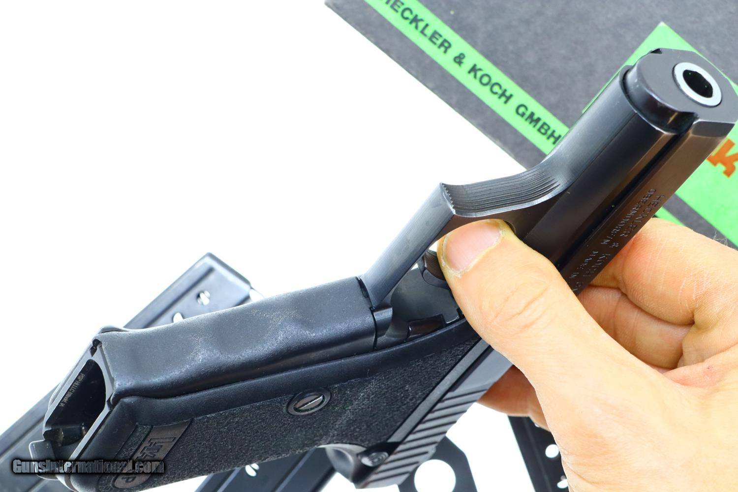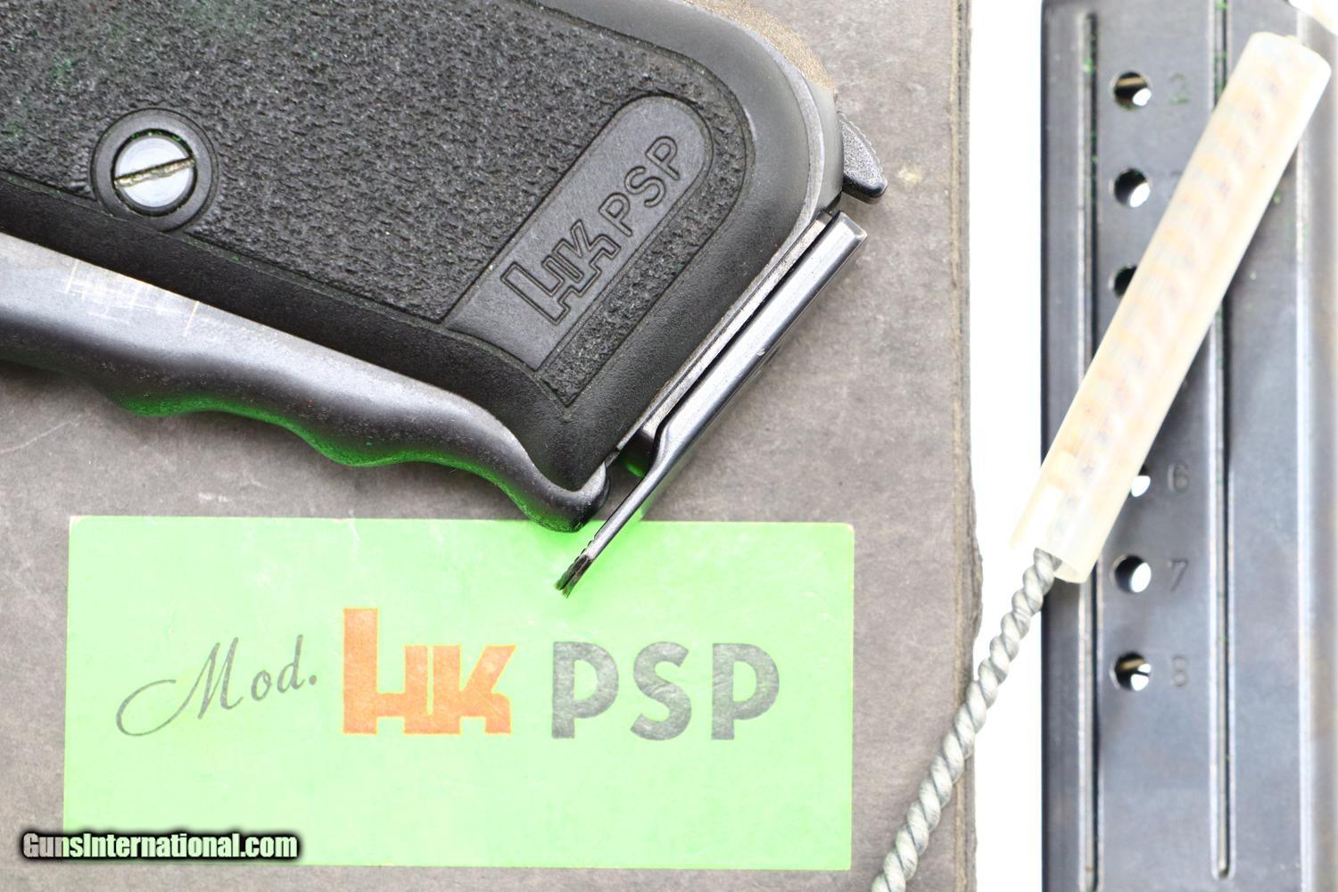 This H&K P7 was assembled right after the PSP series, frame still fitted with PSP grips and shipped in a PSP box with spare mags, tool, and cleaning brush.